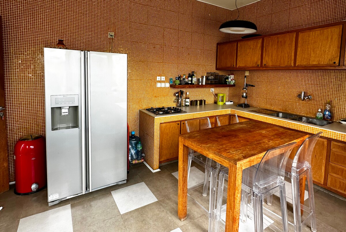 Chào mừng bạn đến với chốn nghỉ dưỡng được thiết kế tinh tế ngay trung tâm Almadies. Ngôi nhà này kết hợp giữa sự thoải mái hiện đại, thiết kế nghệ thuật táo bạo và không gian sống rộng rãi, mang đến chỗ ở hoàn hảo cho du khách. • 2 phòng ngủ được thiết kế đẹp mắt • 4 phòng tắm hiện đại • Khu vực sinh hoạt mở rộng lớn với trang trí theo phong cách thiết kế • Bếp đầy đủ tiện nghi • Ban công riêng có bàn và chỗ ngồi ngoài trời • Quyền sử dụng tầng thượng có tầm nhìn ra tượng đài Nằm cách bãi biển chỉ 7 phút, bạn sẽ dễ dàng đến các nhà hàng, quán cà phê và khu vực giải trí về đêm.