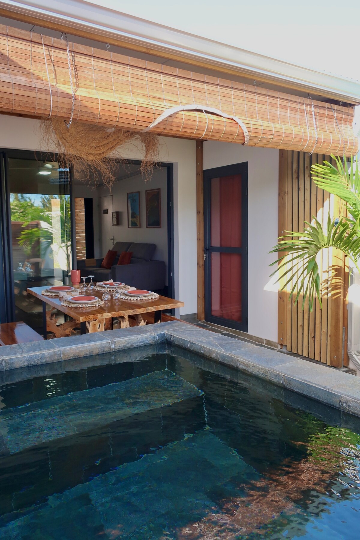 Biệt thự yên bình mang đến thời gian lưu trú thư giãn cho cả gia đình/cặp đôi, nó có một phòng ngủ với giường đôi (140x190) và trong phòng khách của sofa giường cho 2 người (140X190) . Nhà bếp, phòng tắm, hồ bơi riêng nhỏ được trang bị đầy đủ tiện nghi, bãi đỗ xe riêng và có hàng rào. Chỗ ở này cách Lưu vực Manapany và Ti Sand 10 phút đi bộ, nó cũng gần bãi biển Grand Anse, Langevin và một trung tâm mua sắm lớn.