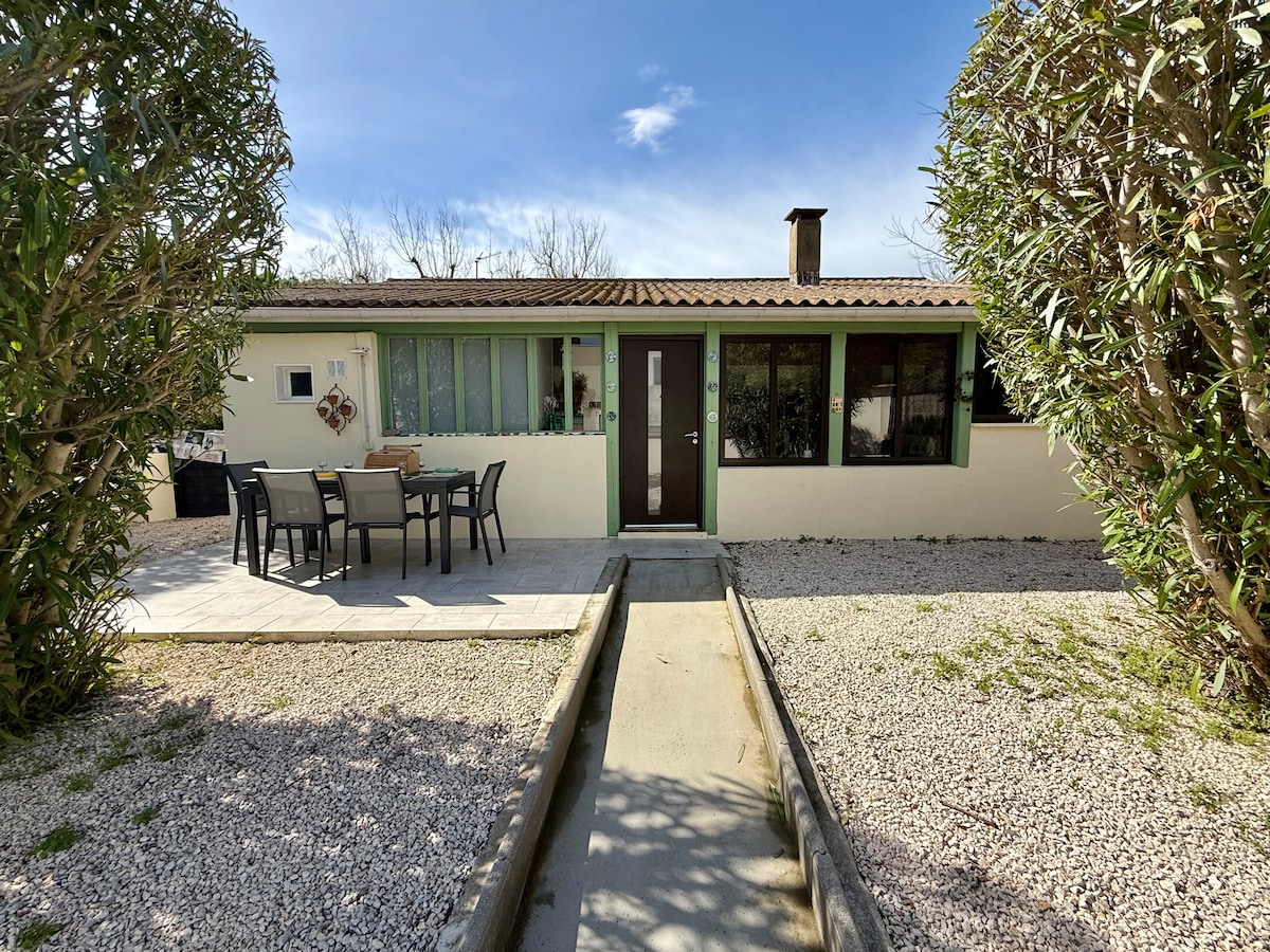 Cet hébergement élégant et spacieux, entièrement rénové de plein pied, terrasse aménagée avec barbecue. Dans quartier calme. Parfait pour 4 ou 6 personnes. Cuisine équipée , Lave linge , Climatisation, internet Wi-Fi Fibre, TV connectée dans les deux chambre et le salon. Les draps de lit sont fournis mais pas les serviettes de toilettes. Situé à moins de 200m de la plage de l'étang de Thau, stationnement gratuit sur place.