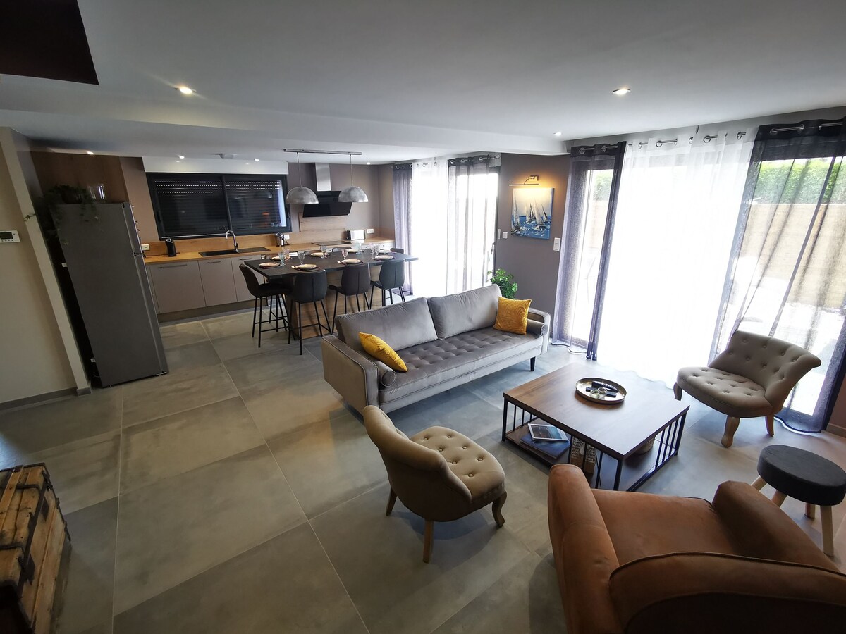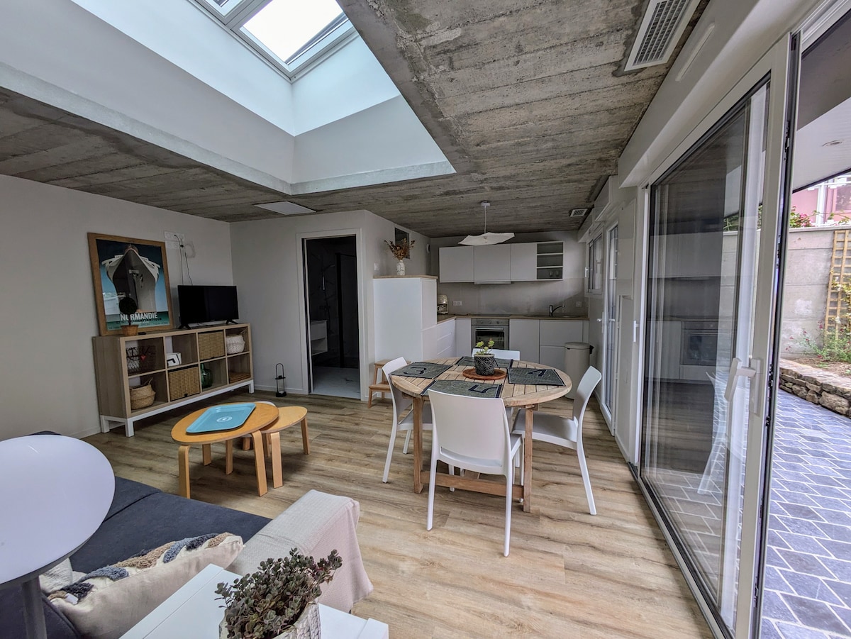 Căn hộ tầng trệt rộng 73 m2 với sân thượng rộng 50 m2 và lối đi thẳng ra bãi biển! Vị trí lý tưởng chỉ cách các cửa hàng của Saint-Pair-sur-Mer 250 m và cách sòng bạc 350 m. Ngôi nhà này bao gồm một phòng khách rộng rãi với phòng khách và phòng khách, một khu vực bếp được trang bị và trang bị, cũng như hai phòng ngủ, một phòng có lối ra vườn. Ngoài ra, còn có phòng tắm với vòi sen, nhà vệ sinh và máy giặt; cũng như gara riêng ở tầng hầm