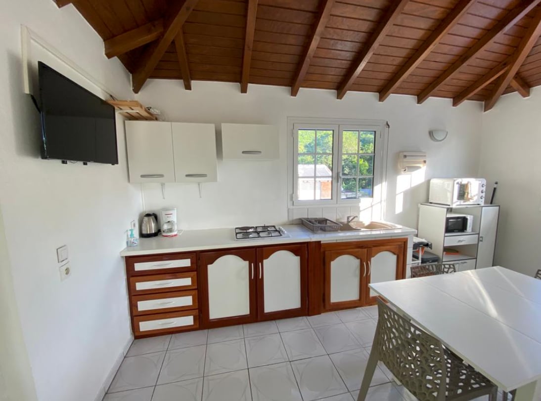 Gîte indépendant atypique sur pilotis, tout en bois et aux couleurs tropicales. Equipé de la climatisation. Entouré de verdure, d'arbres et de fleurs, sans vis à vis. Petite vue mer. Entièrement rénové et repeint en mai 2024. 1 chambre, salle de bain, terrasse et cuisine extérieure. A 100m d'une jolie plage réputée pour le snorkelling, à 50m d'une boulangerie, à 150m des épiceries et restaurants. Lieu idéal pour profiter de la mer, de la plongée et des randonnées.