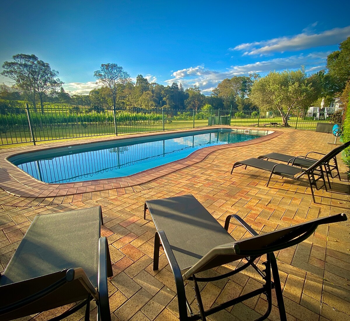 Nằm giữa những khu vườn di sản cổ trên diện tích 5 mẫu Anh gần Morpeth ở Thung lũng Hunter, ngôi nhà thôn dã tuyệt đẹp này là một phần của khu đất Berry House được xây dựng vào năm 1857. Ấm cúng và thư giãn, hoặc khám phá Thung lũng Hunter rộng lớn hơn. Nhà nghỉ thôn dã khép kín (khu dành cho người hầu được chuyển đổi), là ốc đảo nhỏ của riêng bạn trong khuôn viên rộng lớn hơn của Berry House. Sử dụng hồ bơi và phòng xông hơi khô, khám phá các khu vườn, thu thập một số trứng tươi trang trại, cho cừu ăn hoặc chỉ thư giãn. Một nơi thú vị cho trẻ em với con mèo thân thiện và hai con chó.