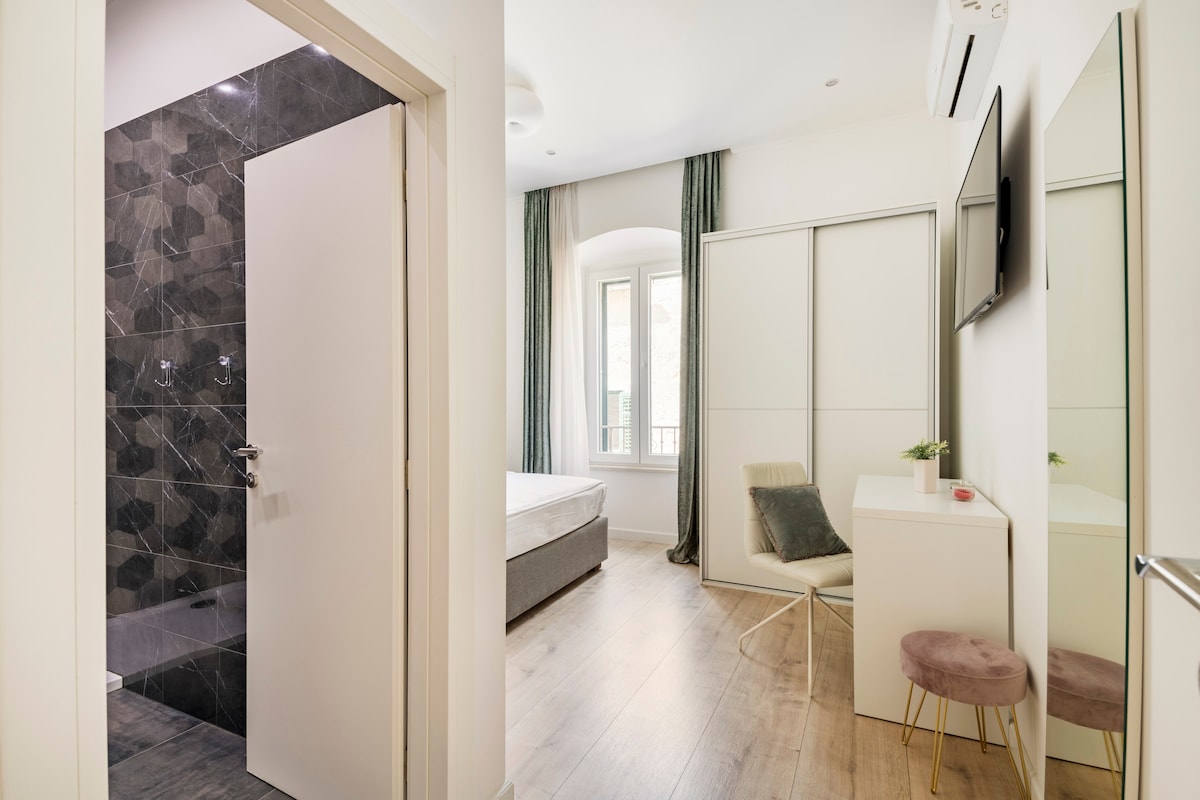 APARTMENT Queen Esther place in downtown is new listed in May 2022. Apartment is a beautiful, newly renovated in the Art Nouveau area adjacent to the Diocletian's palace and the beating heart of old town. Fully equipped kitchen, modern bathroom, designer bedroom, specious lounge with comfortable bed, AC, TV and a lovely terrace with stunning views to Marjan Hill offering you an enjoyable stay within a few paces of the bustle of vibrant Old Split's bar, restaurants and culture.