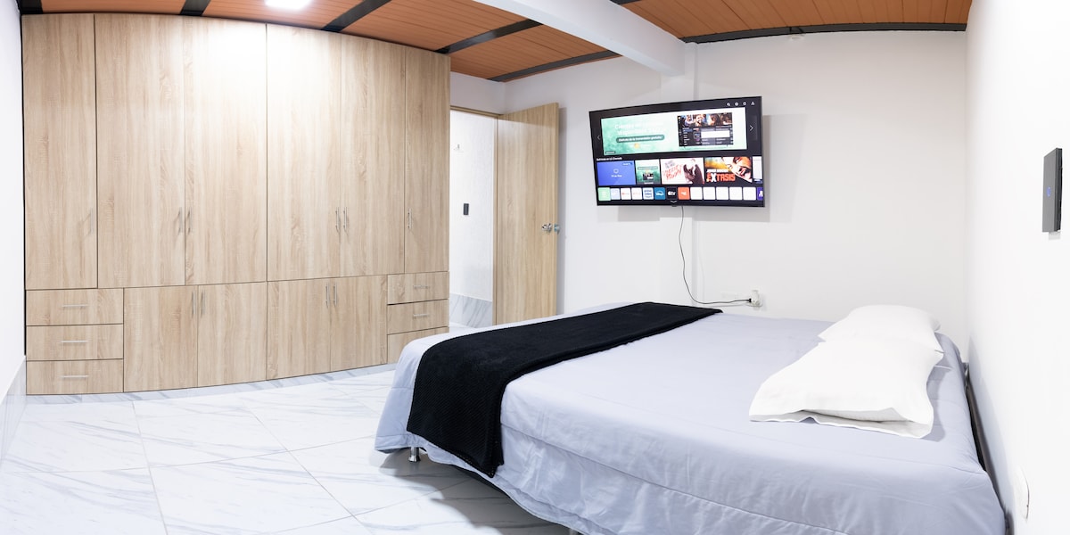 Căn hộ một phòng ngủ đầy đủ tiện nghi với giường đôi, bếp, TV, WiFi, nằm gần khu ẩm thực Isimo - Olímpica, siêu thị, cách Đại học Antonio Nariño 1,2 km, cách sân vận động bóng đá 2 km, cách bệnh viện Sở 2,5 km. Bãi đỗ xe miễn phí bên trong tòa nhà, tối đa cho xe loại sedan