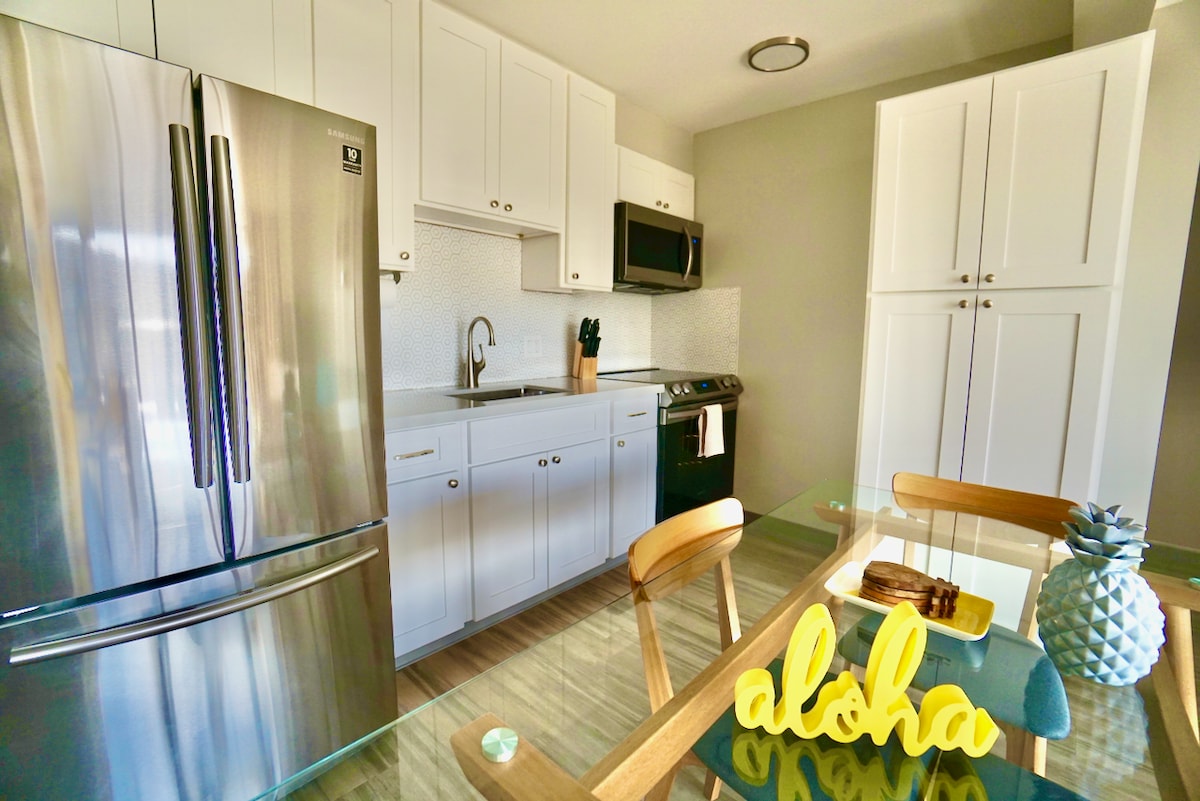 Aloha, welcome to Kai Beach. This stylish luxury condo is the ultimate vacation retreat! You know you have arrived in paradise with the amazing views & boho chic vibe. This elegant large 1BR is very spacious & comfortable. Ultimate beach kit w/ snorkeling gear, premium coffee station, large kitchen with marble island are some of the perks of living the good life. Building has a great newly renovated sauna that just finished! This condo has everything for your special trip. Paradise awaits!