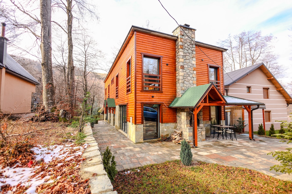 Villa 155 is a cozy mountain retreat located in Kodra e Diellit, Tetovo, in the heart of the Šar Mountains, North Macedonia. The villa offers a warm and welcoming atmosphere, perfect for families and groups looking to relax in nature. Villa 155 is ideally located near ski slopes (10 min walking) making it a great choice for winter sports lovers, as well as a peaceful getaway throughout the year. The interior combines comfort and traditional alpine style, creating a true mountain-home feeling.