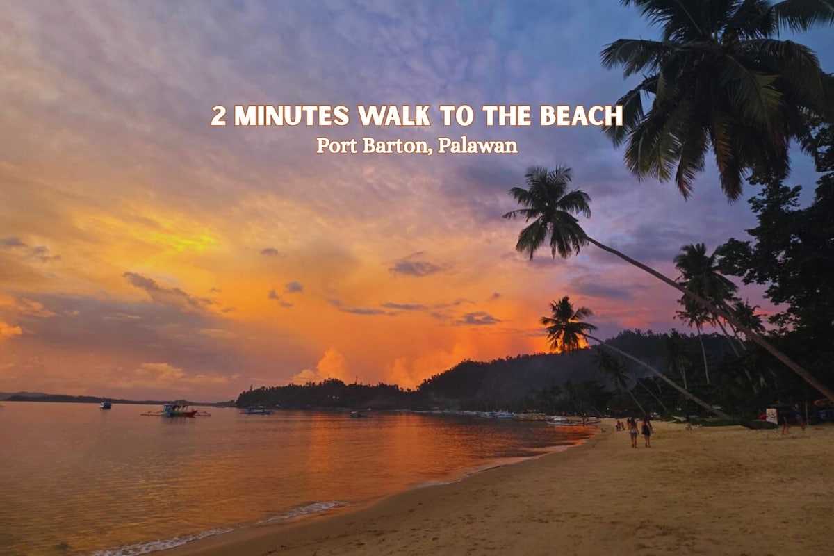 Khám phá thiên đường tại căn hộ yên tĩnh, ấm cúng, thân thiện với ngân sách của tôi chỉ cách bãi biển ở Port Barton 3 phút đi bộ. Đắm chìm trong nét quyến rũ đích thực của địa phương, lòng hiếu khách của người Philippines và những rung cảm yên bình ở trung tâm Port Barton. Được trang bị giường thoải mái, phòng tắm riêng, vòi sen nước nóng, WIFI nhanh Starlink, bàn làm việc, sân thượng, bếp nhỏ, trái cây chào mừng và cà phê không giới hạn.