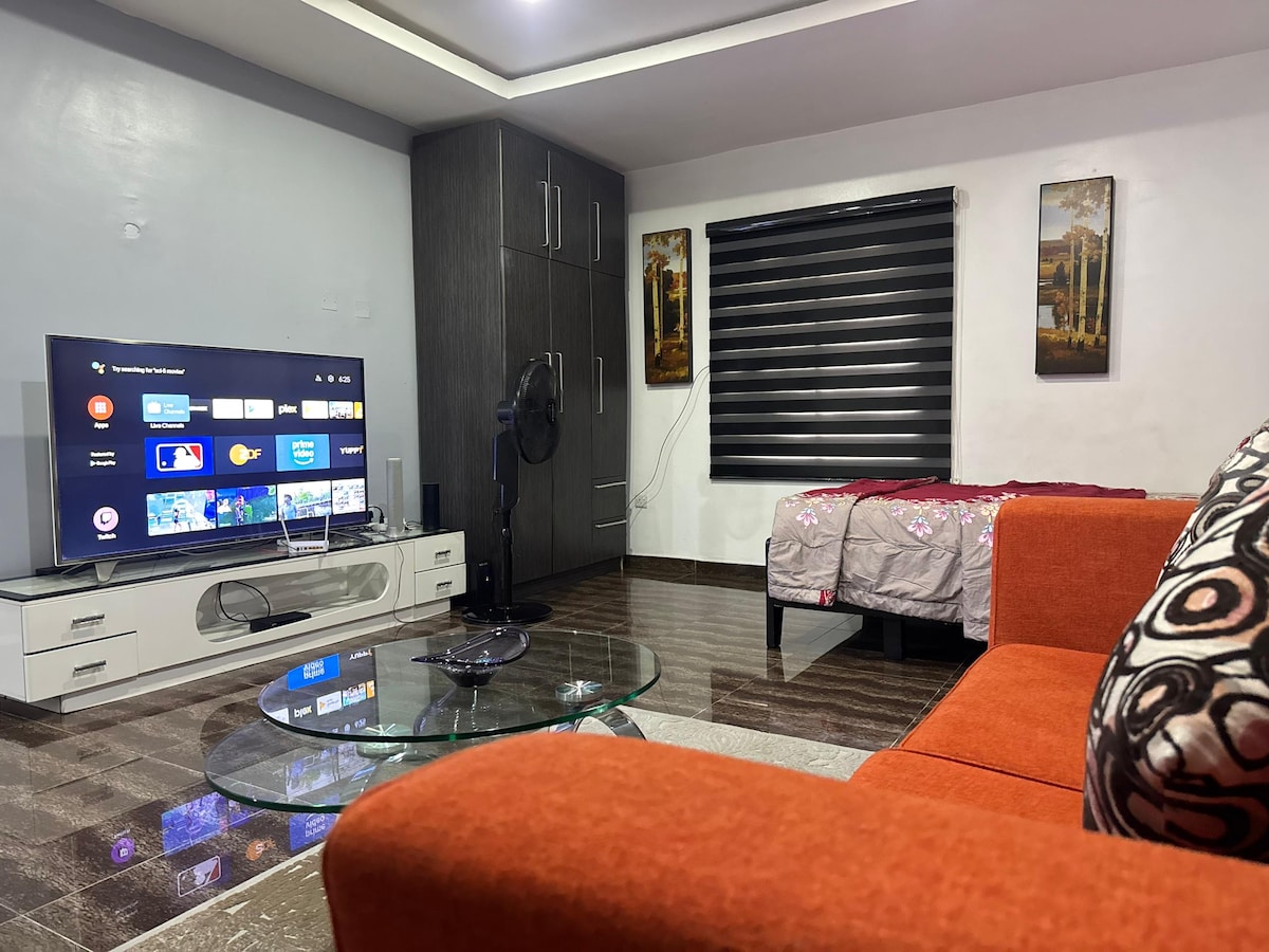 Căn hộ Studio của chúng tôi là chỗ ở ngắn hạn hoặc dài hạn hoàn hảo của bạn - Nằm ngay trung tâm Port Harcourt - GRA. Căn hộ studio này cung cấp một không gian sạch sẽ, được bảo trì tốt và an toàn với tất cả các tiện nghi thiết yếu mà bạn cần để cảm thấy thoải mái và như ở nhà.