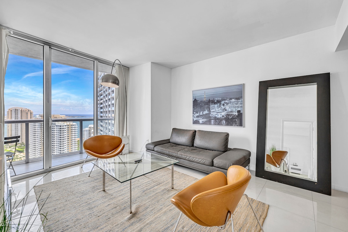** Cảnh quan tuyệt vời **, ** Vị trí hàng đầu * * và * *Luxury Stay** Căn hộ 2 phòng ngủ với tầm nhìn tuyệt đẹp từ tầng 47 của Icon Brickell sang trọng. Ngay cạnh Vịnh Biscayne xinh đẹp, Brickell Key, nhà hàng, câu lạc bộ và khu mua sắm. Đi bộ dễ dàng đến trung tâm Kaseya và Công viên BayFront. Căn hộ cao cấp đầy đủ tiện nghi lãng mạn này cung cấp cho bạn tầm nhìn toàn cảnh vịnh và đường chân trời Brickell, ngắm bình minh và hoàng hôn từ ban công, phòng khách và phòng ngủ chính của bạn.