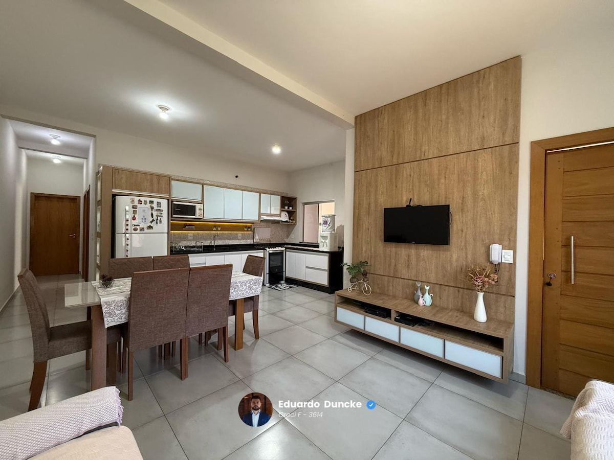 Chào mừng bạn đến với ngôi nhà của chúng tôi, ở đây bạn có một không gian toàn bộ và độc quyền nằm gần Porto Velho Shopping, các ngôi nhà của chúng tôi nằm trong khu phố Flodoaldo Pontes Pinto. Nó chứa tối đa 4 người một cách thoải mái, nhưng nếu bạn cần đón tiếp nhiều người hơn, hãy nói chuyện với chúng tôi rằng chúng tôi sẽ cố gắng hết sức để phục vụ bạn , có gara và mang lại sự tiện lợi và khả năng tiếp cận khi không có cầu thang.