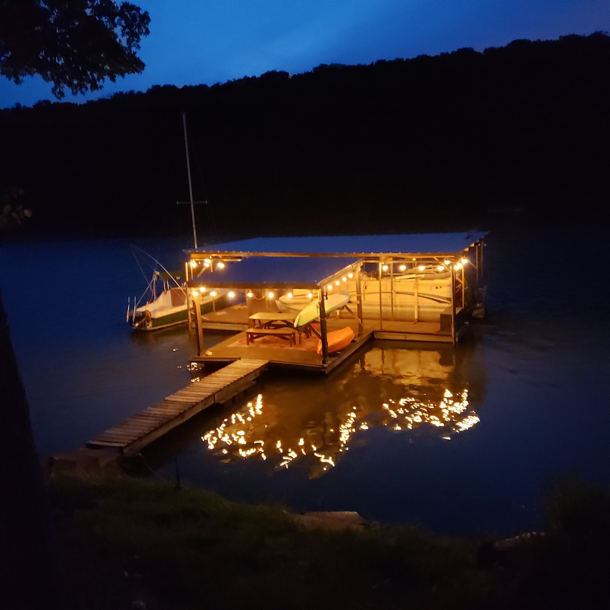Tìm kiếm một nơi nghỉ ngơi nhanh chóng, dành thời gian với gia đình hoặc bạn bè hoặc thoát khỏi thói quen hàng ngày... Cabin Deer Creek đang chờ đón bạn. Cabin MỚI này có 2 phòng ngủ, 1 ghế sofa ngủ và 1 phòng tắm với khái niệm mở trong toàn bộ nhà bếp, khu vực sinh hoạt và ăn uống với tầm nhìn ra hồ tuyệt vời. Đối với các hoạt động ngoài trời, cabin có boong có kích thước đầy đủ, bến tàu 12’x14’, bếp nướng propan, hố lửa, câu cá, giày ngựa, thuyền kayak và chèo thuyền. Thưởng thức bữa ăn ngoài trời tại Possum Hollow và Hungry Fox Restaurant nằm gần đó 5 dặm.