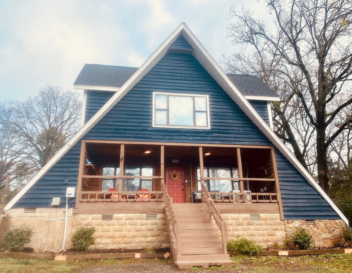 *Gần đây chúng tôi đã thêm một quạt bổ sung vào tầng lửng để hỗ trợ sưởi ấm mùa hè và một lò sưởi với chỗ ngồi phía sau.* Wi-Fi cáp quang, nhà bếp đầy đủ tiện nghi và bếp nướng ngoài trời! Vị trí tuyệt vời, ngay phía sau khu cắm trại ở lối vào Công viên Tiểu bang Petite Jean! Địa điểm độc đáo này có phong cách riêng. Cabin khung chữ A được thiết kế chu đáo để tối đa hóa không gian mà không phải hy sinh các tiện nghi.