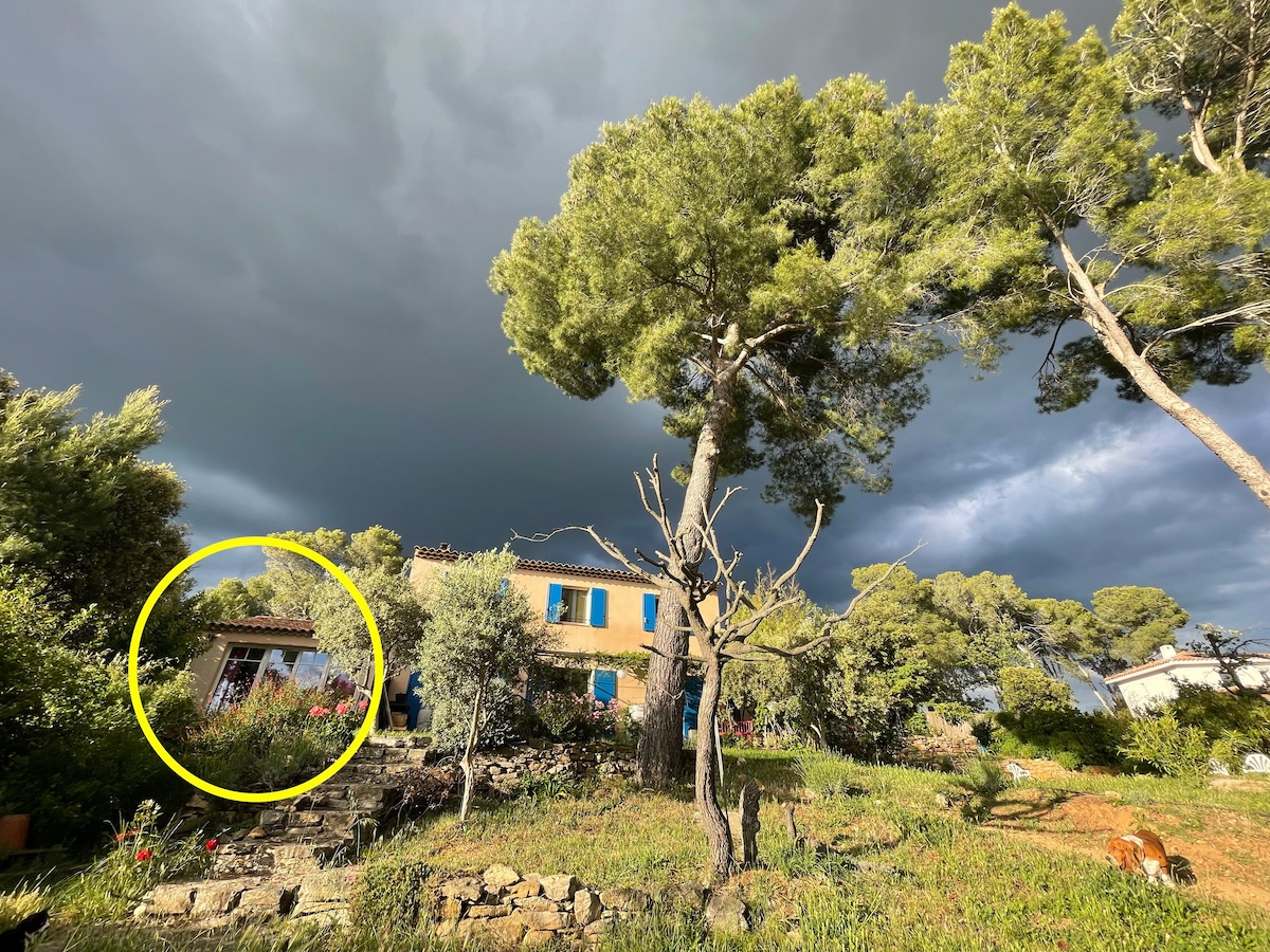 Maison située sur notre propriété de 6000m2 sur les hauteurs de Trets. Nous habitons sur place mais la terrasse et une partie du jardin sont privatives et sans vis-à-vis. Environnement très calme, au cœur de la verdure. Dans le jardin, accès partagé avec une 2ème maison : terrains de sport et jeux (pétanque, basket, foot, tyrolienne, trampoline, balançoire, château, crossfit). Connexion fibre. Accès à la piscine sur réservation (50€/demi-journée : 8h/12h ou 14h/18h). FÊTES STRICTEMENT INTERDITES