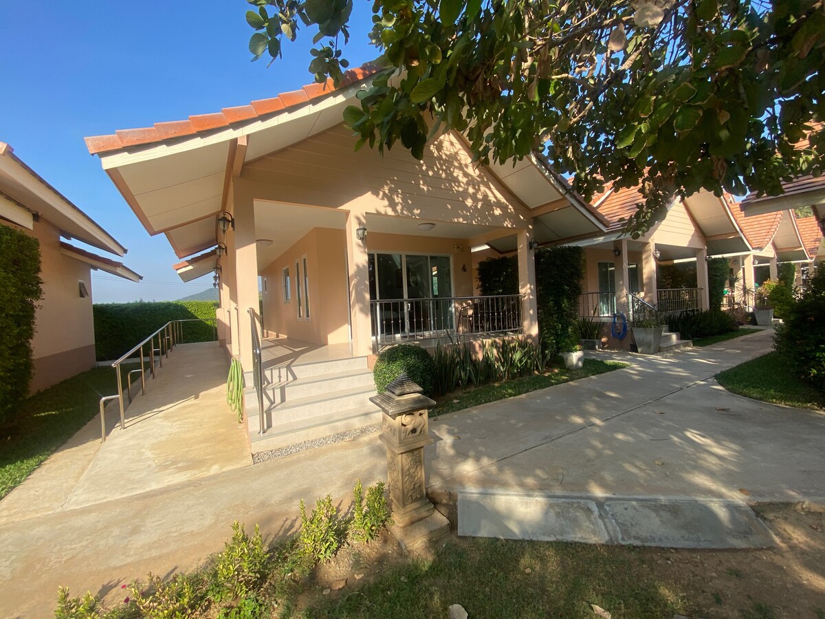 Experience accessibility and tranquility at our wheelchair-accessible retreat in peaceful Pranburi, just 30 minutes from vibrant Hua Hin. Perfect for individuals who are using wheelchairs, elders, and families, our welcoming space is a 15-minute stroll to the beach, providing a serene escape with inclusive comfort for all. the sounds of nature when you stay in this unique place.
