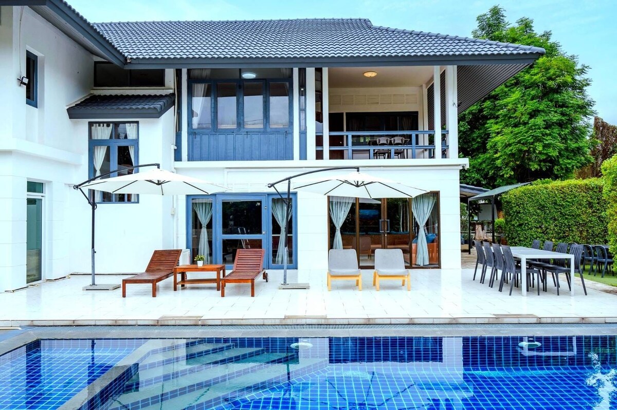 Thoát khỏi thành phố và thư giãn trong biệt thự hồ bơi 3 phòng ngủ yên bình này chỉ cách bãi biển Pranburi vài phút. Areeya Retreat có hồ bơi riêng, bàn bi-a, nhà bếp được trang bị đầy đủ tiện nghi và không gian sống sáng sủa, được chiếu sáng tự nhiên — hoàn hảo để thư giãn hoặc làm việc từ xa với Wi-Fi nhanh. Được bao quanh bởi các cánh đồng và chỉ cách đường bãi biển 1,3 km, nơi đây lý tưởng cho các gia đình, nhóm hoặc cặp đôi đang tìm kiếm sự thoải mái và yên tĩnh. Tận hưởng ưu đãi giảm giá 15–30% cho kỳ ở theo tuần và theo tháng.