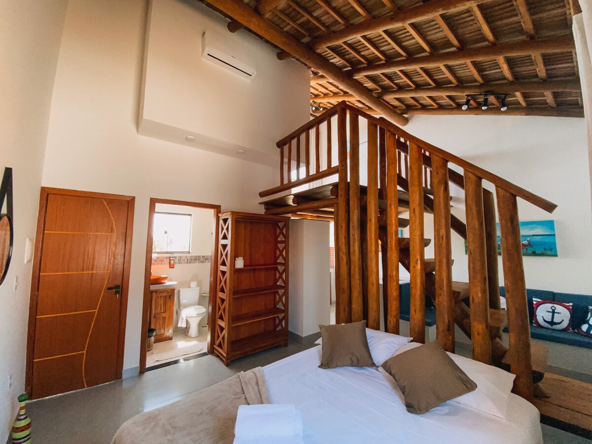 Com 31 mts2, o incrível Flat Premium comporta até 5 pessoas com muito conforto. Possui uma cama de casal Queen em um piso, um incrível mezanino aconchegante para apreciar o pôr do sol com 1 sofá cama para duas camas de solteiro e mais um colchão de solteiro. Uma copa com armários, pia, bancada, frigobar, sala de star, smart tv e os melhores App´s como liberados, Ar condicionado Split e wi-fi.