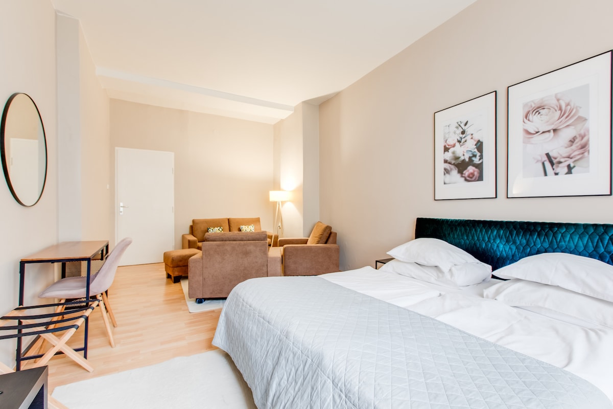 Dành thời gian ở một trong những khu vực đáng yêu nhất của Praha gần Quảng trường Namesti Miru mang tính biểu tượng. Kiến trúc tuyệt đẹp, công viên cây xanh, quán bar và nhà hàng ngay gần đó. Cách trạm xe điện➤ 2 phút đi bộ Cách Công viên Karlovo Namesti➤ 5 phút đi bộ Cách Quảng trường Namesti Miru➤ 5 phút đi bộ Hỗ ➤ trợ siêu phản hồi ➤ Nhà bếp đầy đủ tiện nghi Trả phòng➤ muộn đến 1 giờ chiều Nhà của bạn gần Nhà thờ St. Ludmila, Công viên Grébovka, Nhà hát U Hasičů, Nhà hát Royal, Quán rượu và nhà hàng Séc nguyên bản.