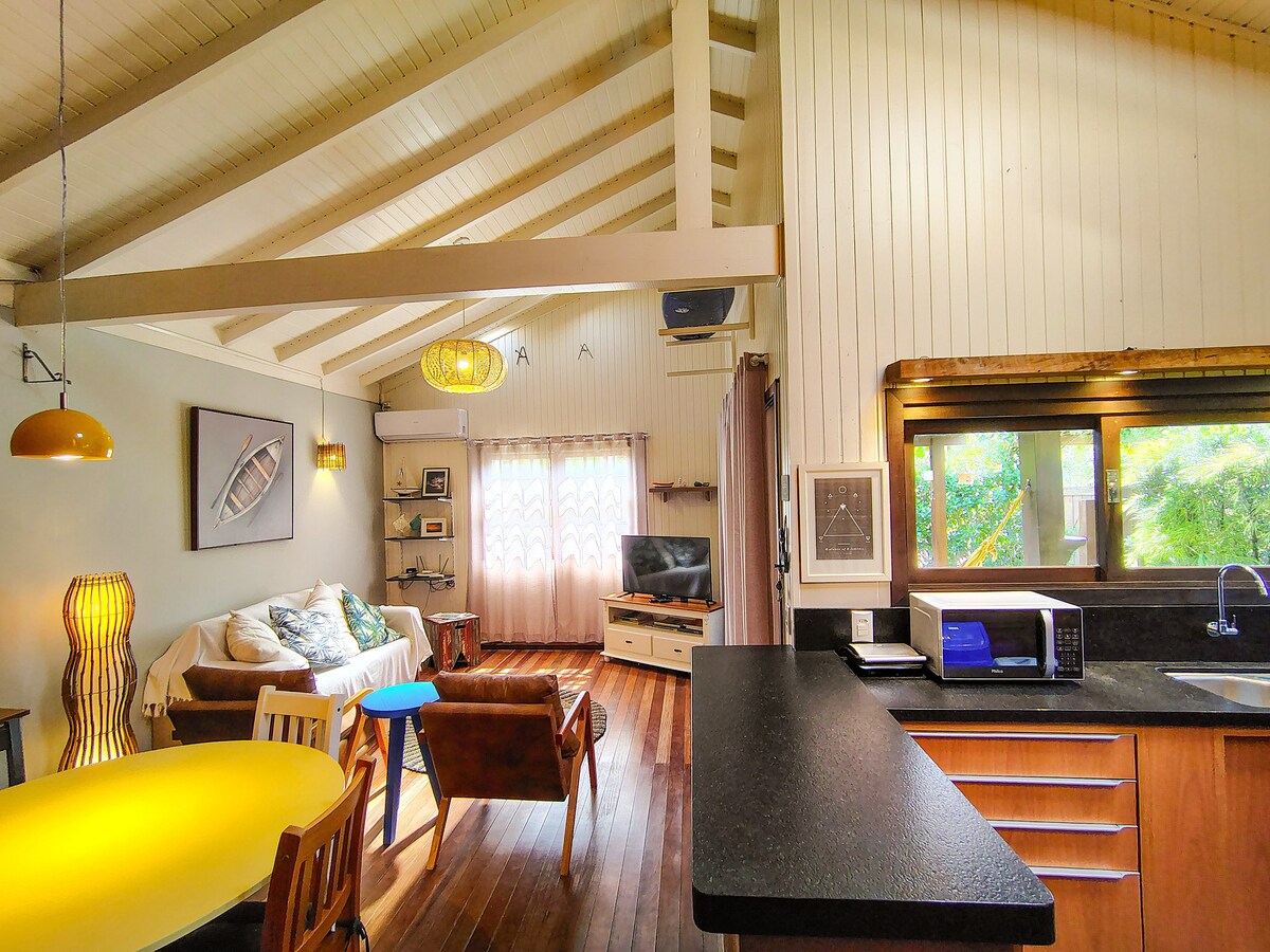 Ngôi nhà lớn cách bãi biển 400 m và 100 mts. đến trung tâm. Sức chứa tối đa cho 6 người. Ấm cúng, thoải mái và kỳ diệu. Quang cảnh tuyệt vời của đầm Ibiraquera trên boong tàu. Quan điểm ở điểm cao nhất của mũi nhìn ra biển. Phòng ngủ chính có giường đôi, 1 phòng ngủ với 5 giường đơn và phòng tắm bên ngoài. Tầng lửng với 1 giường đôi. Phòng khách và nhà bếp. Vòi sen và bếp nướng ngoài trời. Sàn ngoài. Bãi đỗ xe riêng cho hai xe ô tô. Wi-Fi tốt và an toàn.