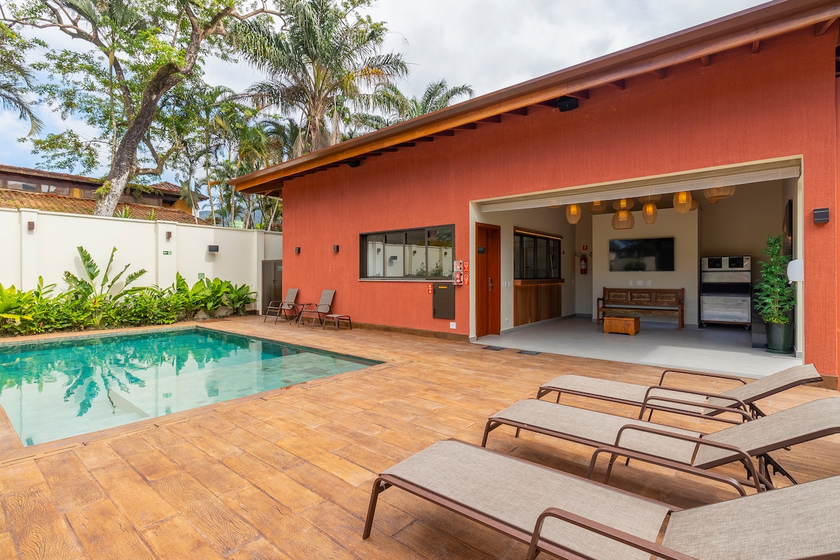 Nhà gỗ thoải mái và riêng tư cho tối đa 4 người cách bãi biển Maresias khoảng 400m. Các phòng có điều hòa nhiệt độ, Wifi, TV thông minh với Netflix và Youtube, ban công với võng và thịt nướng riêng, bãi đỗ xe, bếp riêng được trang bị lò vi sóng, tủ lạnh, bếp và dụng cụ nấu ăn. Giường và khăn tắm được cung cấp. (Không được phép sử dụng trang) Nhiệt độ môi trường xung quanh hồ bơi bên ngoài. Chúng tôi nói tiếng Anh và tiếng Tây Ban Nha.
