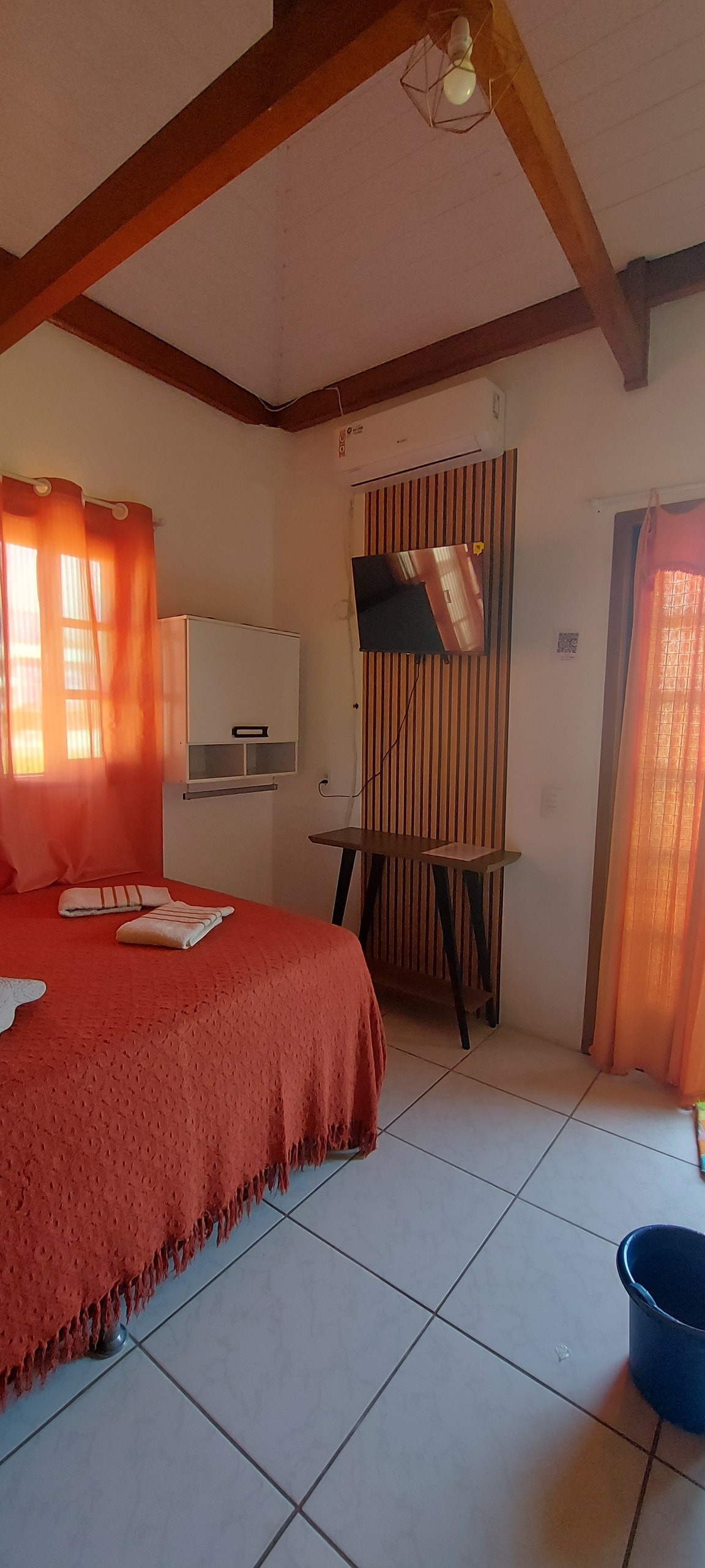Suíte Especial para 2 pessoas. Muito próximo das praias de Bombinhas, Lagoinha, Sepultura e 4 Ilhas. Possui ar condicionado, smart tv, tv a cabo, internet de alta velocidade, cozinha equipada, varanda com rede para descanso e área de churrasqueira privativa. Estacionamento fechado e coberto.