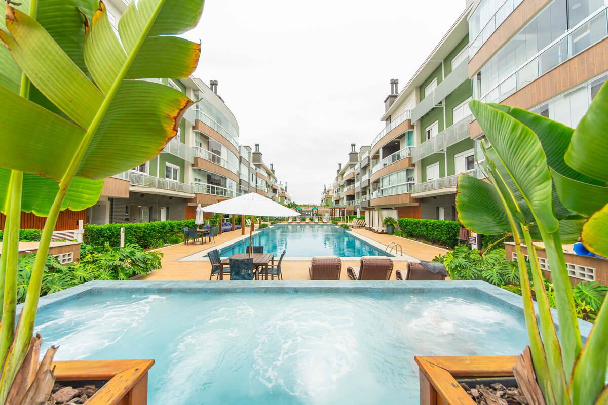 - Căn hộ 2 phòng ngủ có điều hòa không khí; 2 phòng tắm 1 là phòng suite; Ban công nhìn ra biển với BBQ; 2 Hồ bơi; 2 Nhà để xe; Máy giặt; Truyền hình cáp; Internet wi-fi; Hồ bơi người lớn và trẻ em, Thiết bị ngoài trời, Vòi sen, thang máy ; Lối ra bãi biển riêng. - 1 giường đôi; 2 giường đơn; 2 giường đơn. - Nằm ở Praia do Campeche, cách bãi cát 50 m. Gần nhà hàng, quán bar, nhà thuốc và chợ.