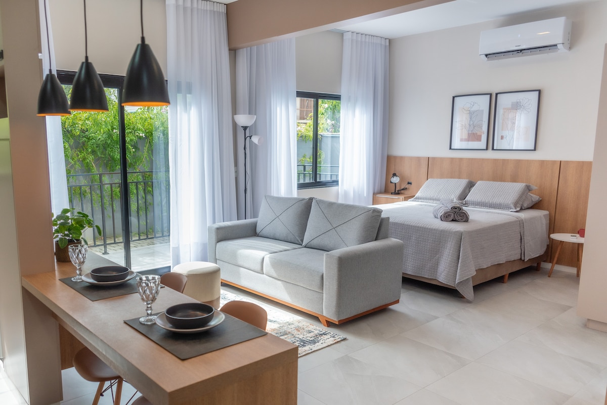 Studio mới, sạch sẽ và thoải mái, có điều hòa không khí và chỉ cách bãi biển 30 m. Nó nằm giữa các bãi biển Campeche và Morro das Pedras. Studio có TV thông minh 32 inch, Wi-Fi 200Mb, nhà bếp đầy đủ - tủ lạnh, tủ đông, bếp, lò gas, lò vi sóng, lò nướng điện và máy pha cà phê. Phòng khách được tích hợp và giường sofa rất thoải mái có thể chứa khách thứ ba. Bãi biển yên tĩnh, lý tưởng để lướt sóng, lặn, lướt ván diều hoặc chỉ thư giãn bên bờ biển.