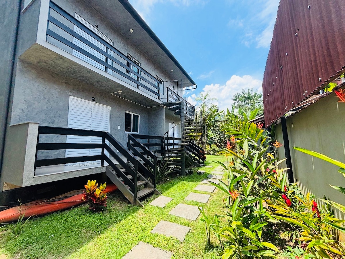 Chúng tôi nằm bên sông Perequê-Açu, trong khu phố yên tĩnh và rợp bóng cây Caborê, chỉ cách Trung tâm lịch sử 10 phút. Khu vực này có đường phố trải nhựa và đường dành cho xe đạp. Bạn sẽ ở trong một căn hộ tinh tế, được thiết kế và xây dựng bởi kiến trúc sư nổi tiếng của Paraty Zé Cassius. Căn hộ, với một tầng lớn, một phòng ngủ và nhà bếp rộng rãi và được trang bị đầy đủ tiện nghi, một phòng tắm đẹp và một ban công đẹp với bàn ăn sáng và ghế tắm nắng để chiêm ngưỡng khung cảnh tuyệt đẹp!