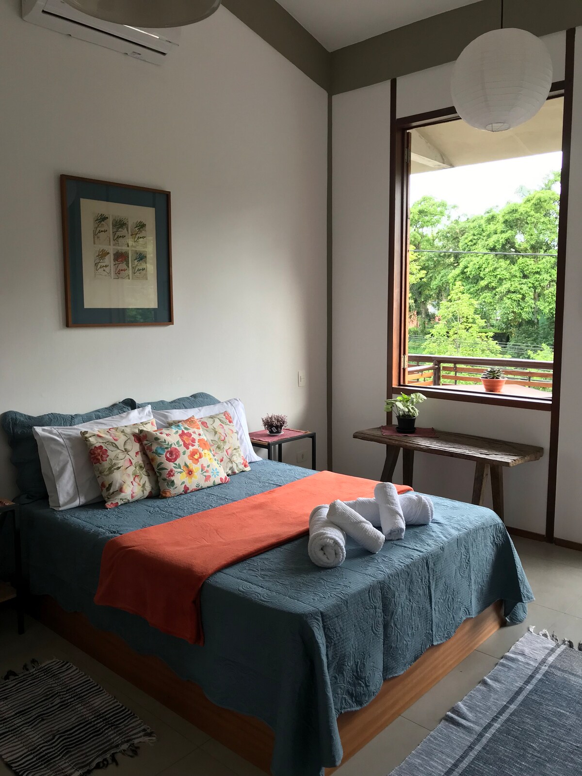 Ngôi nhà này là nơi nghỉ ngơi yên tĩnh mà bạn đang tìm kiếm, với tầm nhìn tuyệt đẹp và các loài chim. Nhà bếp tích hợp với mặt bàn kiểu Mỹ và phòng khách được thắp sáng với đồ nội thất mộc mạc tạo ra một bầu không khí ấm cúng. Trên ban công, thư giãn trên võng hoặc chuẩn bị một bữa tiệc nướng ngon miệng. Phòng có giường queen, TV và tủ quần áo, và phòng tắm được trang bị phòng tắm và vòi sen riêng biệt, đảm bảo sự thoải mái của bạn. Ngoài ra, ngôi nhà có vườn rau và sân sau. Đừng bỏ lỡ cơ hội tận hưởng ngôi nhà độc đáo này!