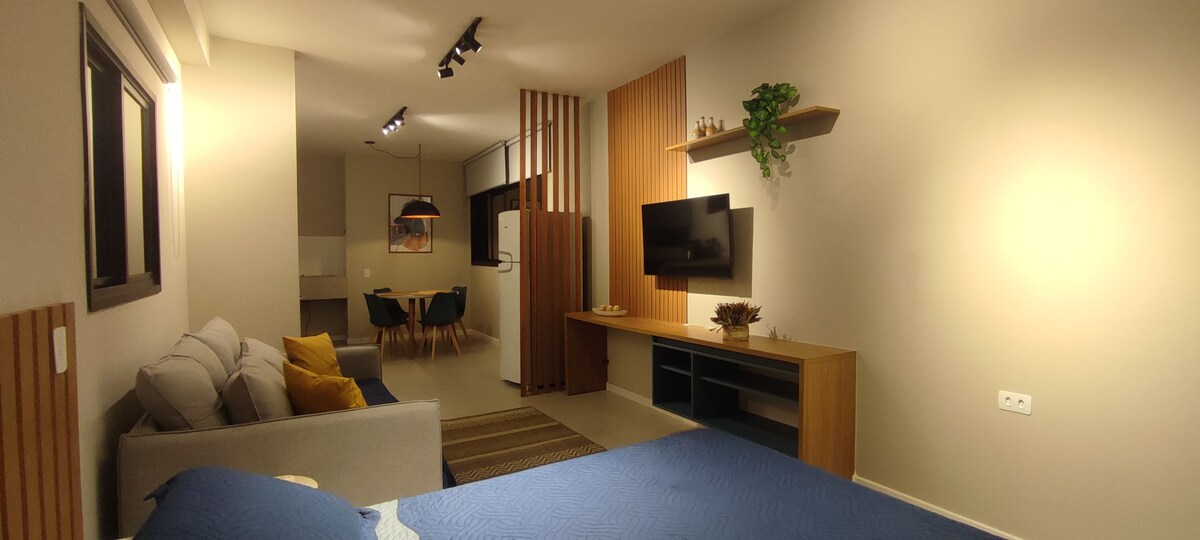 Studio mới với đầy đủ tiện nghi giải trí Tenorio/Praia Grande