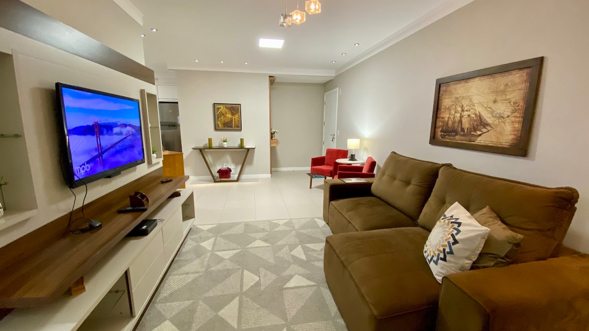 Căn hộ tuyệt vời giữa biển và thiên nhiên, 02 phòng có cửa chớp điện và điều hòa không khí, 02 phòng tắm, rạp chiếu phim TV 60” 4k với Netflix, Hbomax mở, Xbox One, Wifi, TV ở tất cả các phòng, tiệc nướng ngoài trời, đồ nội thất được lên kế hoạch trong tất cả các phòng, 02 không gian gara có mái che, ghế bãi biển và tấm chắn nắng. Hồ bơi dành cho người lớn và trẻ em với bãi biển bán Olympic, sân thể thao đa năng, phòng tập thể dục, phòng trò chơi có hồ bơi và thư viện đồ chơi. Căn hộ chào đón gia đình bạn