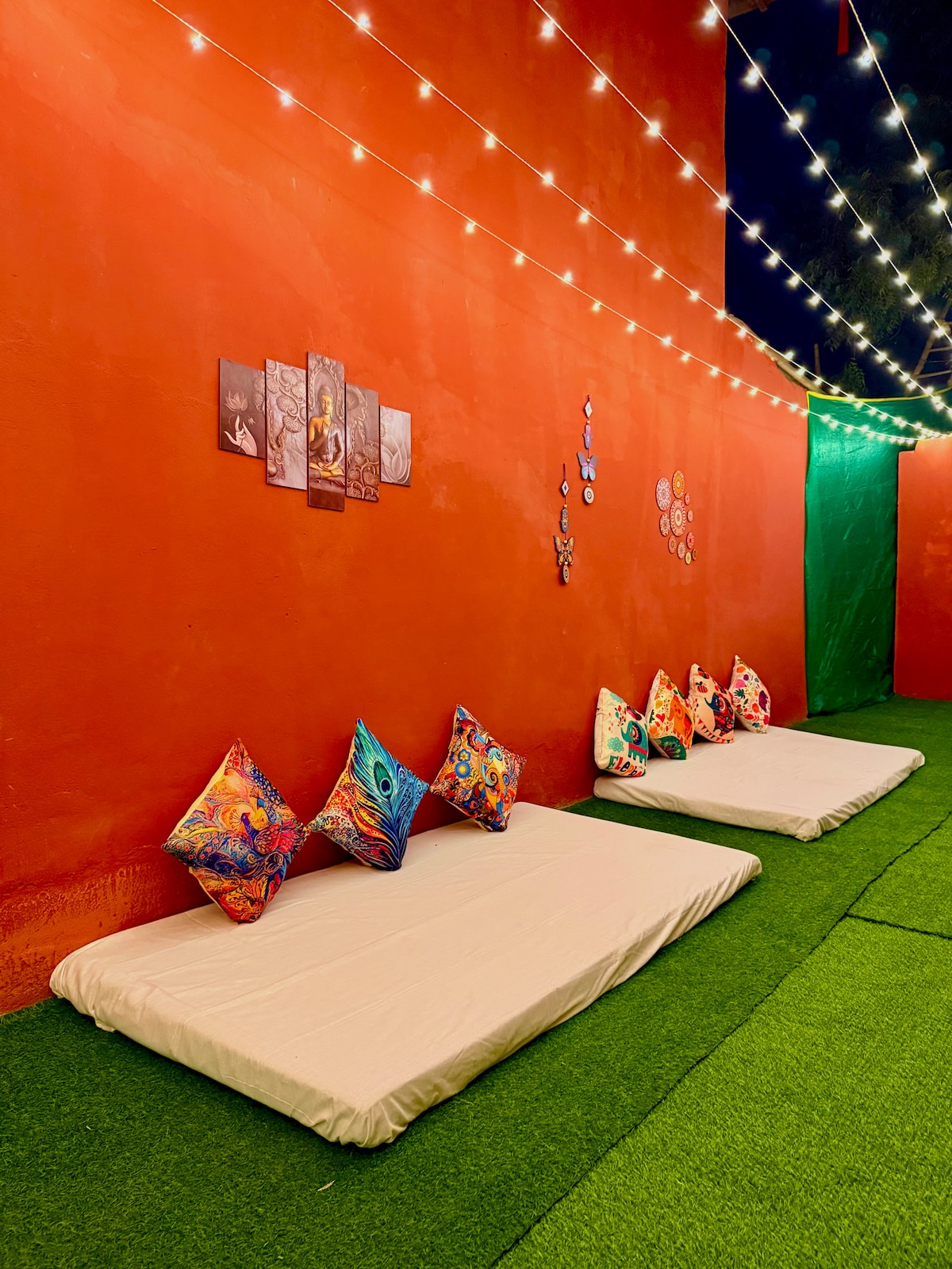 Bạn có thể đặt Biệt thự của chúng tôi chỉ với 30.000 INR/ngày để tổ chức bữa tiệc, tụ tập và bất kỳ sự kiện nào (tối đa 200 người), trong đó bạn nhận được 7 phòng điều hòa và toàn bộ khu vực bãi cỏ cho các sự kiện của mình. Biệt thự của chúng tôi mang đến sự thoải mái, không gian và sự thanh lịch, lý tưởng cho các kỳ nghỉ gia đình và các sự kiện nhóm lớn. Các phòng ở tầng trên có ban công lớn với tầm nhìn thanh bình. Bước ra ngoài đến một khu vực bãi cỏ trải dài có thể đón tiếp tối đa 150 khách một cách thoải mái, lý tưởng cho đám cưới, tiệc tùng hoặc các sự kiện của công ty.