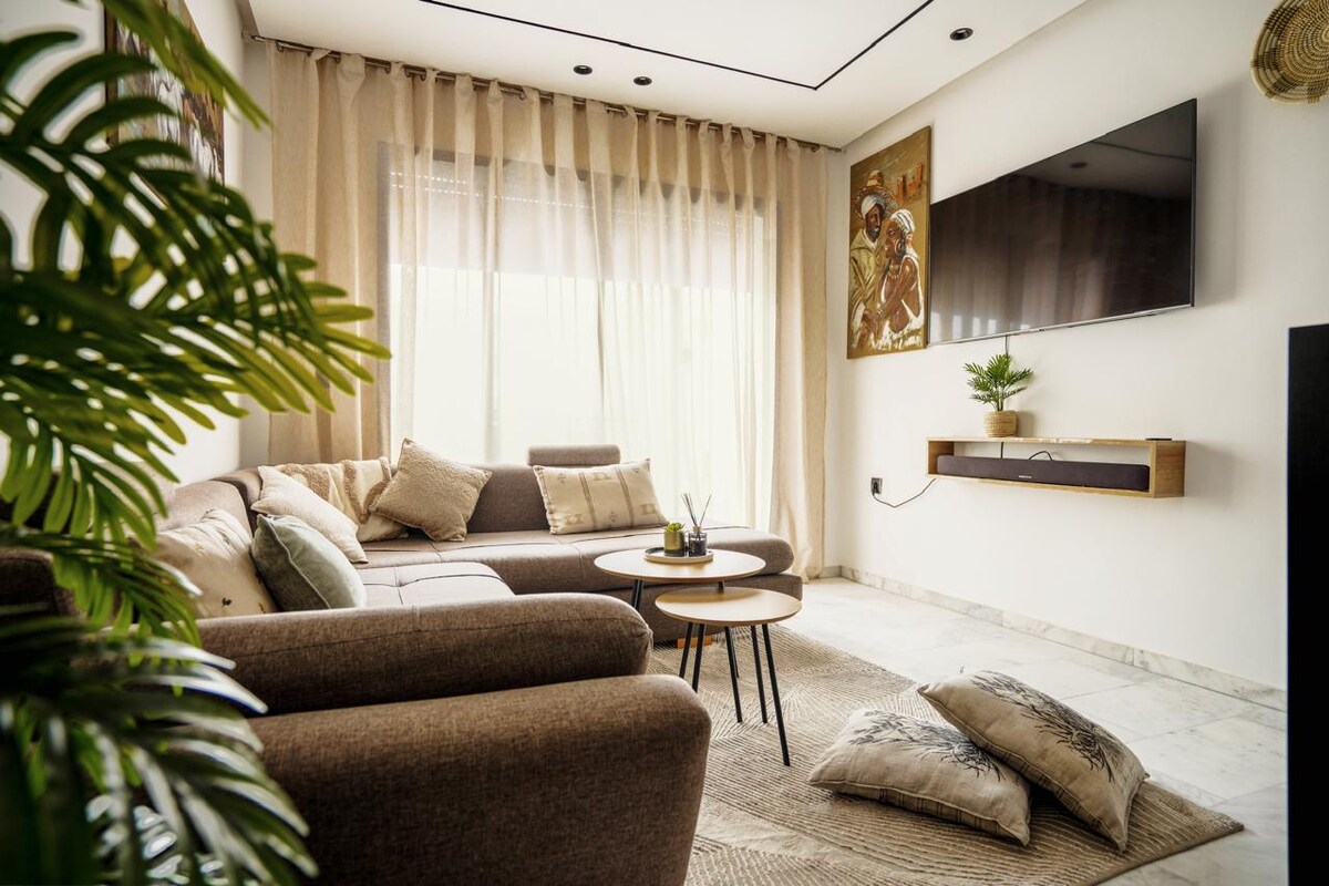 Appartement NAOMI – Un cocon moderne et luxueux en plein cœur du quartier Les Princesses, à deux pas du Stade Mohamed V. Avec sa literie haut de gamme, son design raffiné et son confort absolu, cet espace élégant promet un séjour chic, serein et inoubliable à Casablanca. Parfait pour un séjour calme pendant le Ramadan au cœur de Casablanca