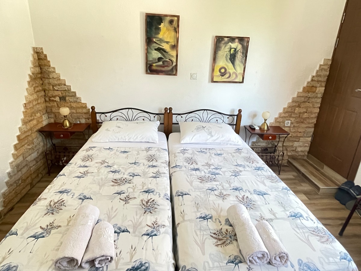 Tọa lạc tại điểm cao nhất của Pestani (Ohrid), phòng của bạn (tầng hai) có tầm nhìn độc đáo ra Hồ Ohrid và núi Galicica. Được bao quanh bởi cây xanh và thiên nhiên phong phú, bạn có thể tận hưởng trên một trong 5 sân thượng nhìn ra hồ hoặc núi, hoặc chỉ đơn giản là ngồi trong vườn bên đài phun nước và lắng nghe âm thanh của dòng sông. Trong phòng sang trọng, bạn có 2 phòng ngủ, 1 phòng khách, nhà bếp, phòng tắm, nhà vệ sinh, sân thượng khép kín với lò sưởi và khu vườn xanh khổng lồ.