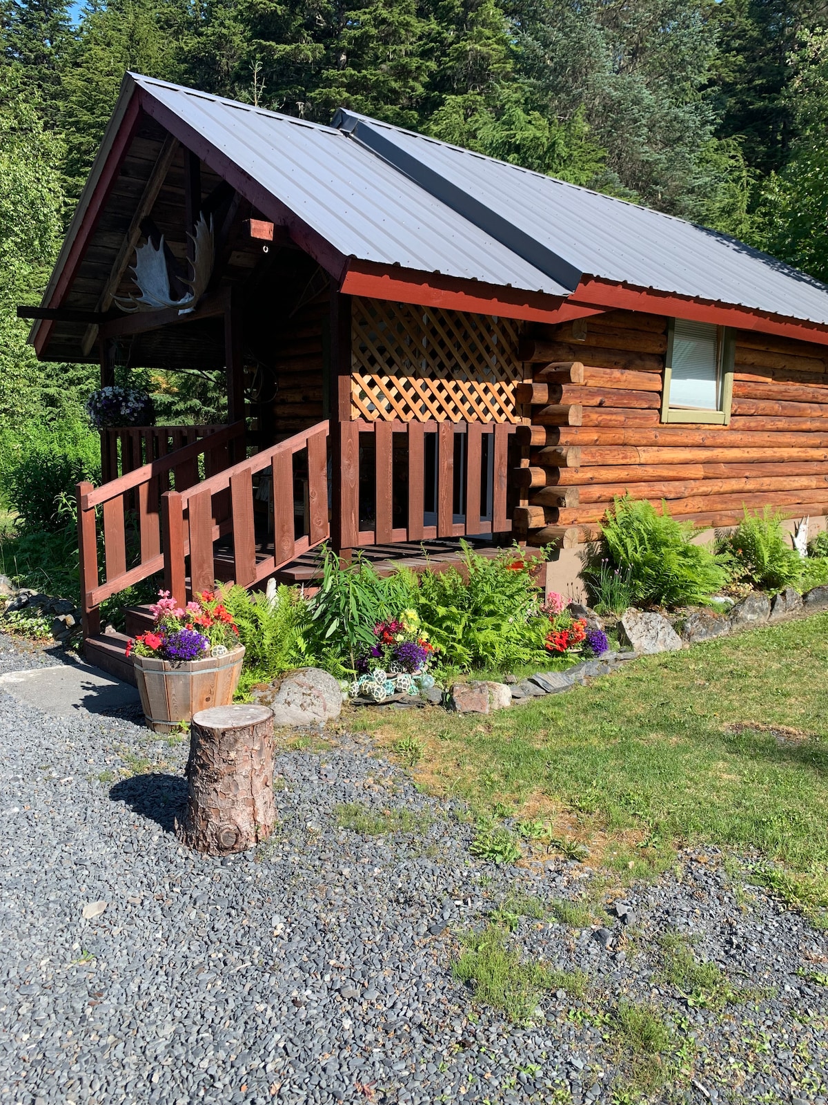 Cabin ấm cúng với giường Queen và bồn tắm đầy đủ. Cách Seward 7 dặm. Khăn trải giường và khăn tắm 100% cotton. Tủ lạnh mini, bếp nấu, lò vi sóng, máy nướng bánh mỳ, ấm cà phê, ấm đun nước, chảo chiên và luộc, bát đĩa, bộ đồ ăn, muối và tiêu, dầu ô liu, cà phê, trà, ca cao, dầu gội đầu, sữa tắm. BBQ. Nhiệt điện tùy chọn, Propane Máy sưởi và quạt treo tường. Đây là một nơi yên tĩnh và chúng tôi sống trong khuôn viên. Không có tiếng ồn hoặc nhạc lớn. Không có khách hoặc xe bổ sung. Không có thú cưng. Cabin cách đó 10 feet x 12 feet, do đó không phù hợp với trẻ em.