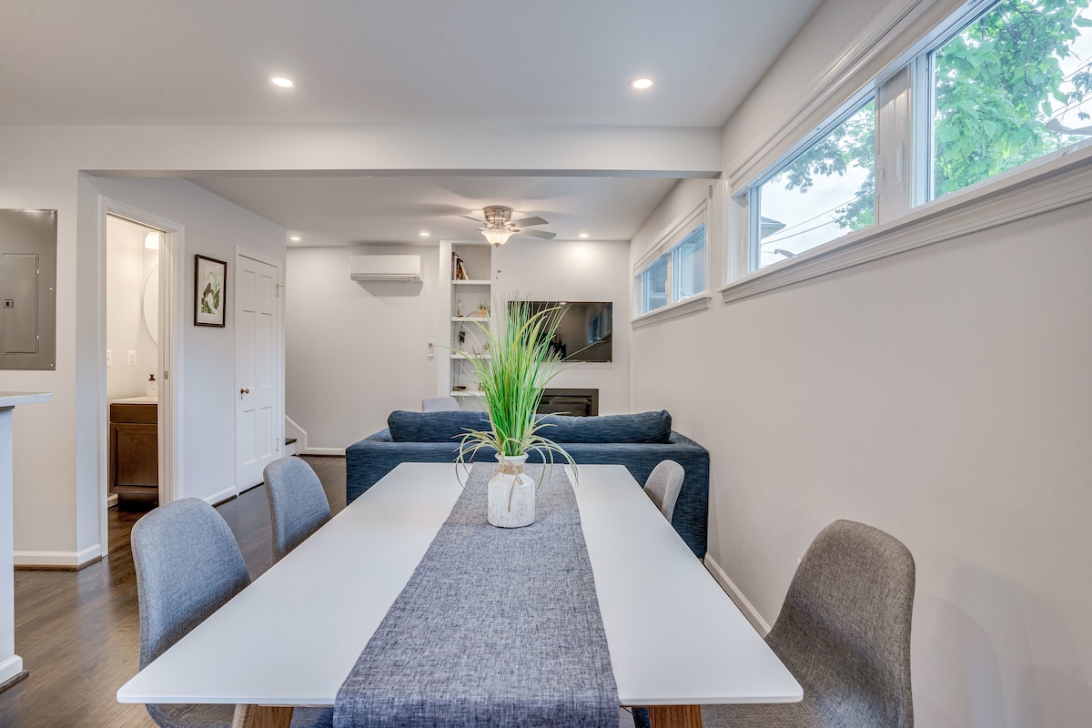 Trải nghiệm thành phố mà không bị ồn ào. Tận hưởng căn hộ có lối đi riêng, hiện đại, được cải tạo lại gần đây trên một con phố có hai bên hàng cây ở ga tàu điện ngầm DC. Bao gồm: nệm sang trọng cỡ queen Casper, bãi đỗ xe miễn phí trên đường phố, sân sau chung với bếp lửa và lò nướng, vòi sen rộng rãi với ghế dài spa, bếp nhỏ với tủ lạnh, lò vi sóng, cà phê/trà, khăn tắm và đồ vệ sinh cá nhân miễn phí, TV thông minh với Netflix, Prime Video, TV trực tiếp và hơn thế nữa, tủ quần áo với bàn là, kệ và không gian cho hành lý và internet tốc độ cao.