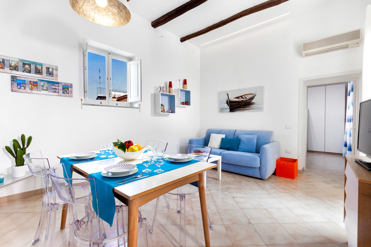 Căn hộ đẹp đã được cải tạo hoàn toàn vào năm 2021. Căn hộ nằm ở tầng hai của một tòa nhà cổ không có thang máy. Căn hộ được trang bị nội thất tinh tế theo phong cách Địa Trung Hải và bao gồm khu vực ngồi giường đôi, bàn đá cẩm thạch bếp đầy đủ và 4 ghế, tủ quần áo lớn, 1 tivi và nó được trang bị tất cả các dịch vụ và tiện nghi, hệ thống sưởi và điều hòa không khí,wifi internet. Căn hộ nhìn ra biển với tầm nhìn tuyệt đẹp ra bán đảo Sorrento