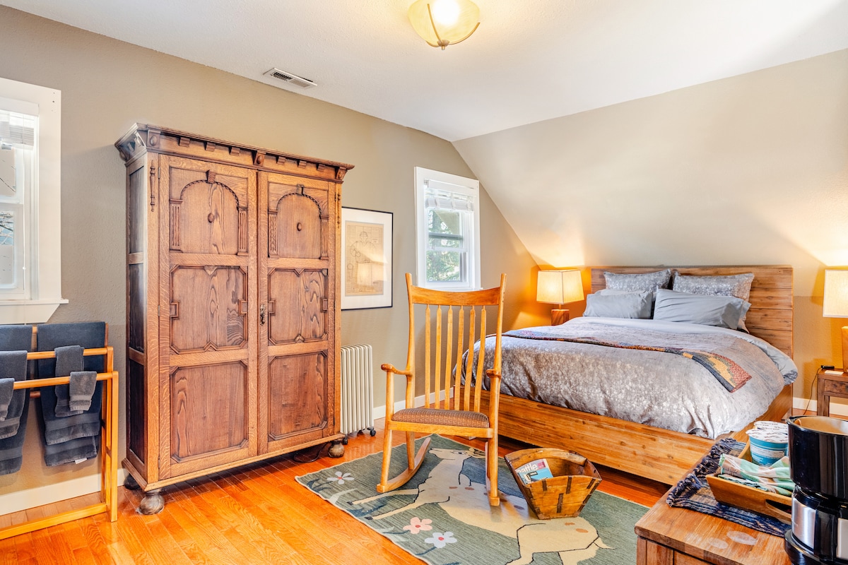 King room + private bath 5 mins to light rail