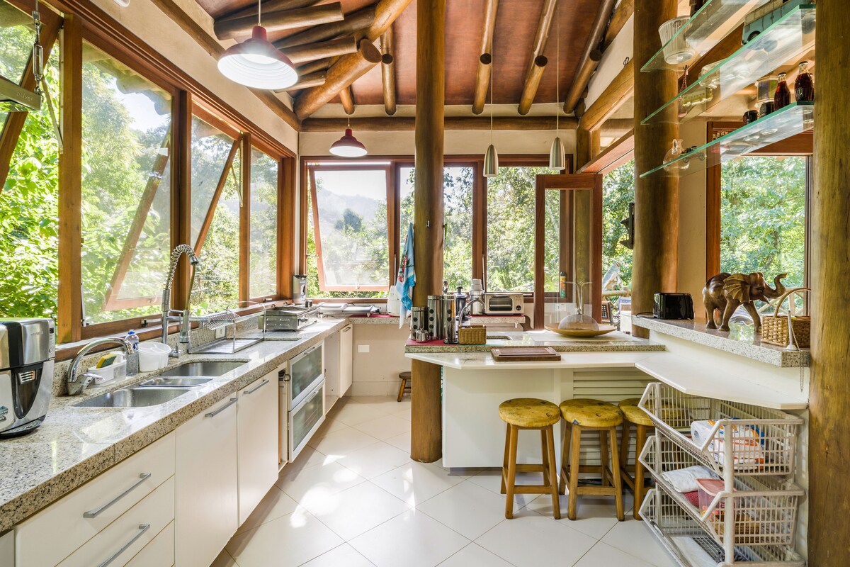 ngôi nhà nằm ở giữa Mata Atlantica, với tầm nhìn tuyệt vời ra tất cả các phòng của ngôi nhà, bao gồm cả phòng kính tròn, bạn có tầm nhìn ra biển và đảo và vẫn có một chút tiếng ồn từ thác nước để ngủ ngôi nhà có một phòng kính tròn và 2 ban công ở trên cùng, ở phòng tắm dưới cùng, phòng khách, nhà bếp đầy đủ và boong bên ngoài