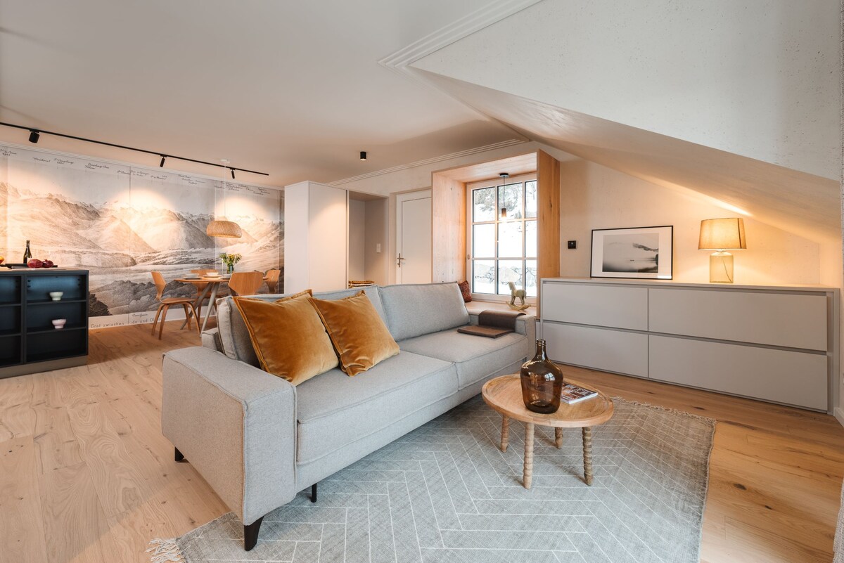 Chào mừng bạn đến với căn hộ penthouse GIPFEL-GLÜCK. Đỉnh cao của Sunleitn Residence: 107 m² (1.153 ft²) với khu vực sinh hoạt/ăn uống không gian mở và một phòng trồng cây có mái kính tuyệt đẹp. Nhà bếp đầy đủ tiện nghi và lối ra sân thượng rộng rãi với tầm nhìn toàn cảnh 180° ra núi trong không gian hoàn toàn riêng tư. Thư giãn trong phòng xông hơi khô bằng gỗ tái chế kiểu Phần Lan riêng tư với tầm nhìn ra núi. 2 phòng ngủ, lý tưởng cho tối đa 4 khách.