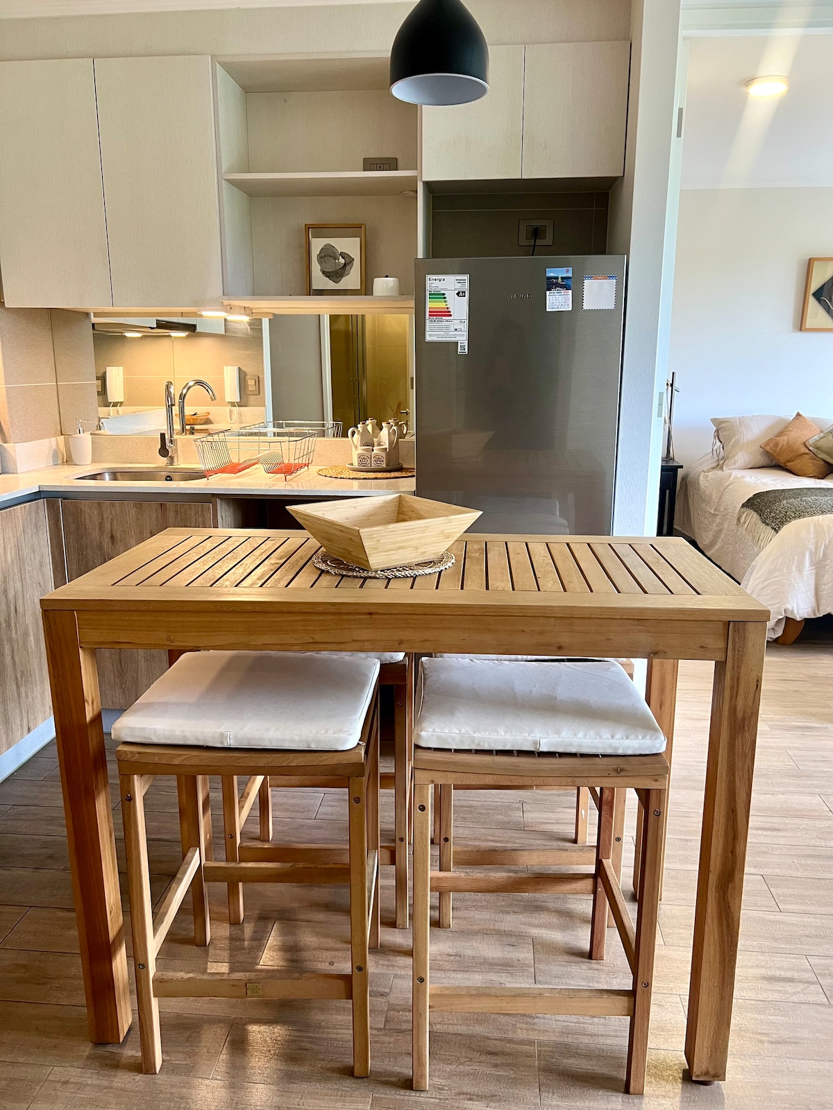 Studio mới và ấm cúng ở vị trí tốt nhất của Pucón, cách bãi biển lớn, trung tâm thành phố vài bước chân và cách ly với sự ồn ào của đường phố chính. Nó có giường 2 chỗ, nệm futon 2 chỗ, nhà bếp đầy đủ tiện nghi, phòng tắm đầy đủ, WiFi, TV 49"với Netflix, Disney+ và nhiều hơn nữa, sân thượng, máy sưởi, lò nướng, máy pha cà phê, 2 xe đạp để sử dụng không giới hạn, trong số những thứ khác. Có chỗ đỗ xe công cộng trước lối vào tòa nhà. Nó bao gồm ga trải giường, khăn tắm và đồ dùng nhà bếp cơ bản cho mỗi kỳ ở.