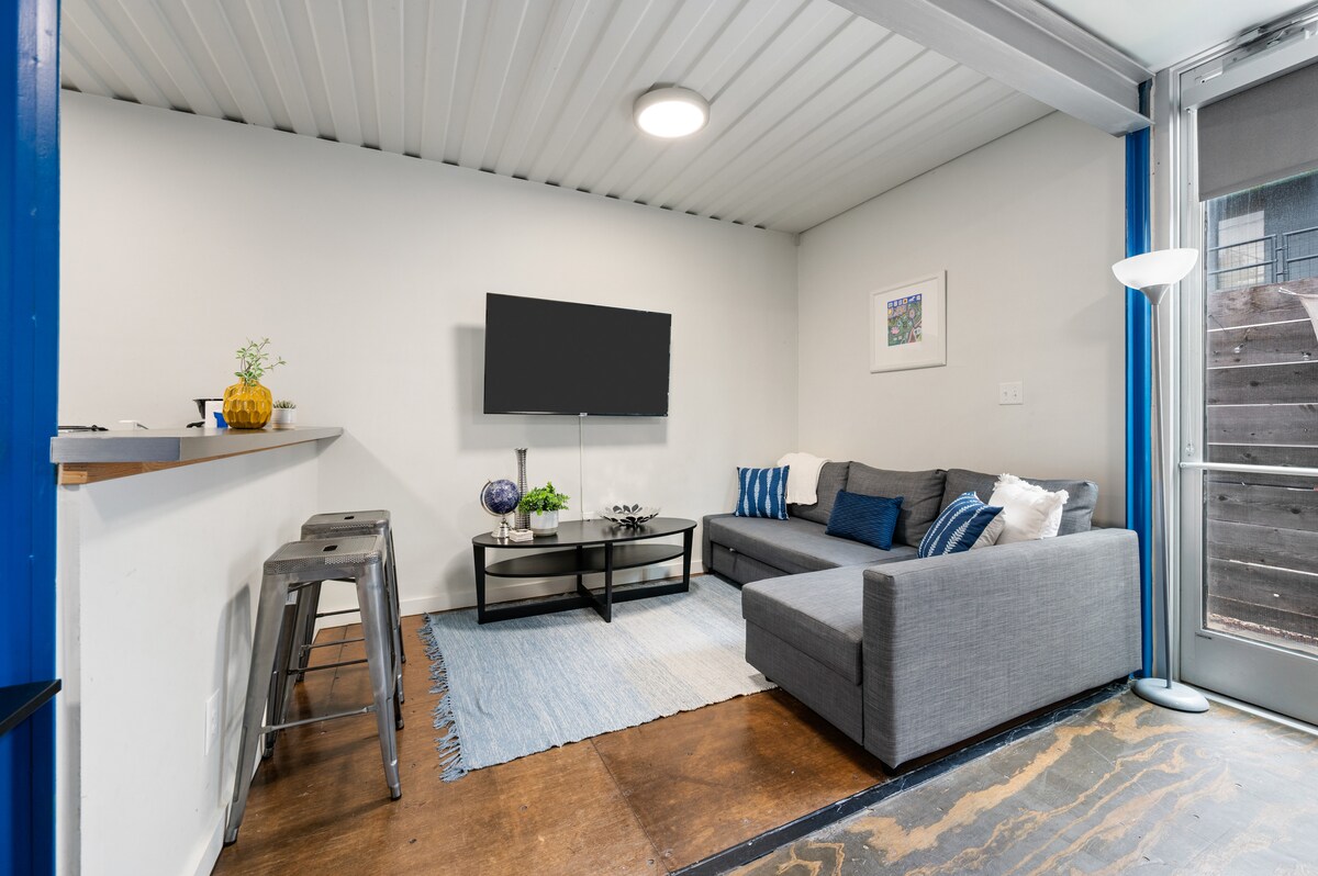 Hãy thử nhà container sống trong ngôi nhà nhỏ độc đáo này! Ngủ 2 người trên giường Murphy® tùy chỉnh với nệm Queen cỡ Tuft & Needle™ siêu sang. Nhà bếp và khu vực ăn uống có mặt bàn cảm ứng, tủ lạnh và mặt bàn lót nút tùy chỉnh. Treo trên boong mái rộng rãi thắp sáng tuyệt đẹp vào ban đêm với đèn đường sắt có thể điều chỉnh màu sắc. Phòng tắm đầy đủ kích thước, vòi sen gạch tùy chỉnh và phòng tắm rộng rãi hoàn thành ngôi nhà container hấp dẫn này.