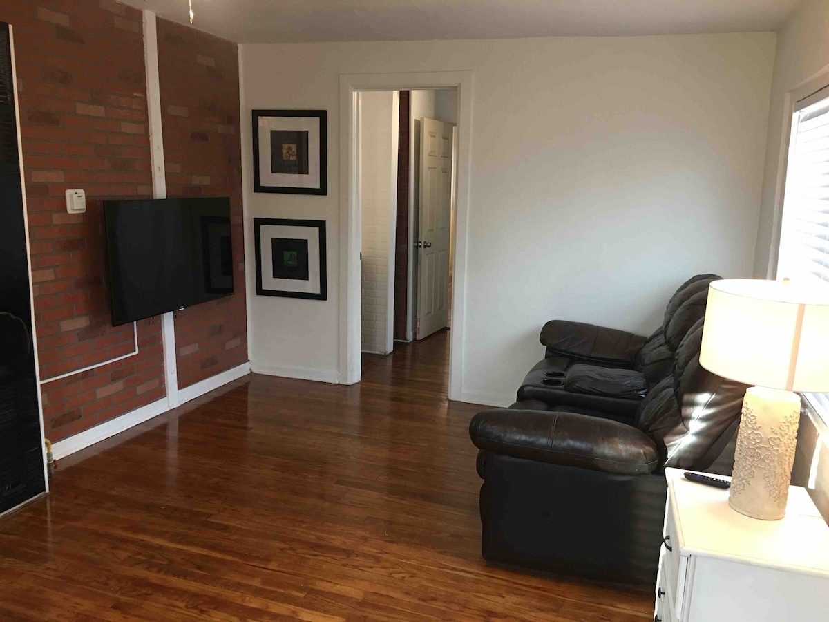Beautifully Renovated Park House for Leisure or Extended Stays. Immaculate Non Smoking Home with Modern and Vintage Charm. Located in a quiet neighborhood that combines privacy and a range of fantastic amenities to enhance your stay with an unbeatable location. House has a Large King Master Bedroom with Flat Screen Smart HD TV, Bathroom with Shower, Spacious Living Room with Flat Screen Smart HD TV, Private Office, Dining Room, Modern Kitchen, Laundry Room, 1 Car Garage for a Sm-Md size vehicle