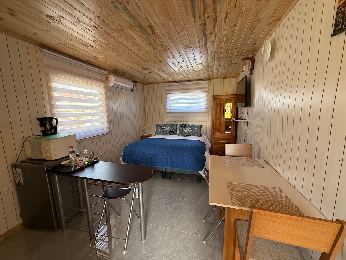 Te invitamos a disfrutar de la calidez y confort de nuestro alojamiento, el cual se encuentra cómodamente acondicionado para dos personas, a pasos de avenidas con relevancia comercial, supermercados, clínicas, lugares de esparcimiento , estadio, parques y plazas. Disponemos del siguiente equipamiento: Electrodomésticos y elementos de cocina básicos esenciales, Dormitorio totalmente equipado, toallas y otros. Ideal para Home Office. ¡Ven a disfrutar, te esperamos!