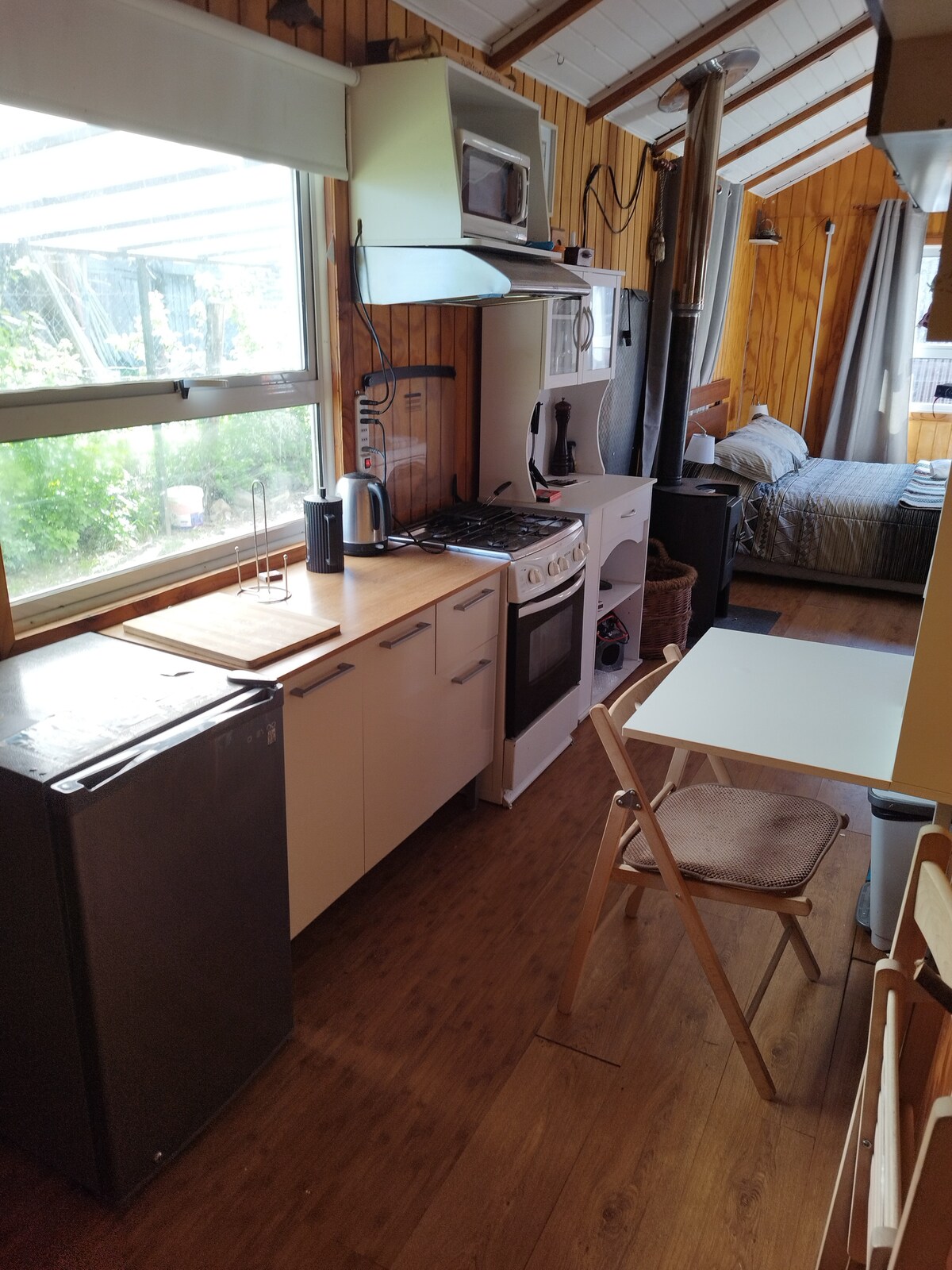 Funcionamos bajo el concepto de contact less y self chkin. La cabaña se entrega con ropa de cama, sabanas de baño, amenities, papel higiénico y leña. Hay vajilla y utensilios de cocina para 8 personas. Se cuenta con terraza, kayak para paseos en la bahía, parrillas para asado y un hot tub. La parrilla se debe pagar por cada uso. El Hot Tub se debe pagar por cada uso de 2 horas y no es de uso exclusivo ya que otros pasajeros pueden usarlo en el dia.
