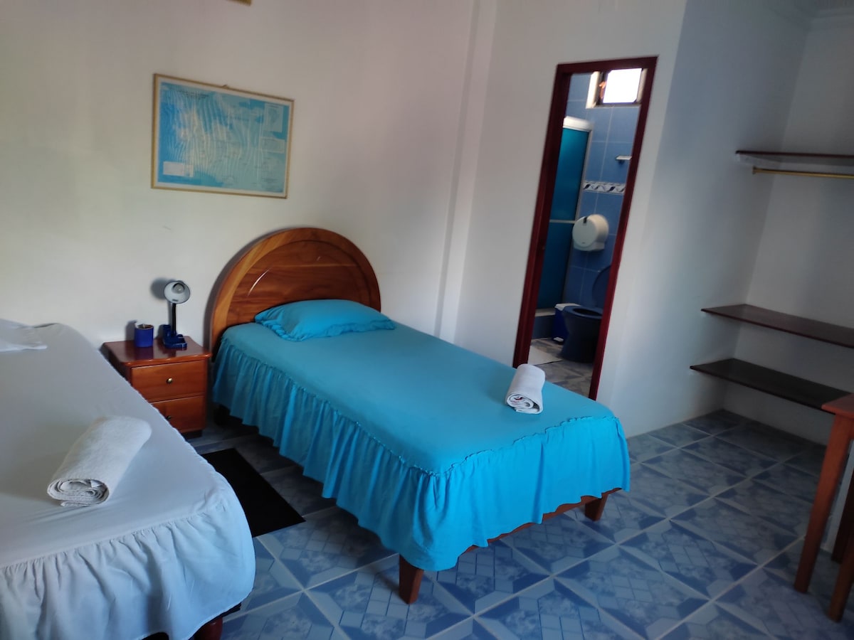 Hãy đến ở trong một phòng riêng chỉ cách bãi biển 5 phút đi bộ! Gia đình tôi và tôi điều hành một nhà trọ trên Đảo Isabela - một thiên đường bãi biển kỳ lạ! Chúng tôi rất mong được đón tiếp bạn đến ở và rất vui được giúp đặt tour và cung cấp cho bạn thông tin về nhiều hoạt động và địa điểm để xem! Chúng tôi rất mong được chia sẻ chuyến phiêu lưu Galapagos của bạn với bạn! Phòng bao gồm: - Phòng tắm riêng - 1 giường đôi (hôn nhân) - Nước uống lọc - Wifi và điều hòa nhiệt độ - Khăn tắm và ga trải giường - Dịch vụ giặt ủi $ 7pd