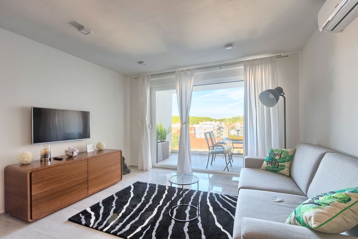 Beautiful, new renovated apartment, with sea view and perfect location. 1km from city center, 800m from most beautiful beaches. The apartment (44m2) consists of large open plan living / dining room with fully equipped kitchen and sofa bed, large bathroom, bedroom with king size bed and large private terrace. Free WI-FI, several international TV channels, air conditioning.