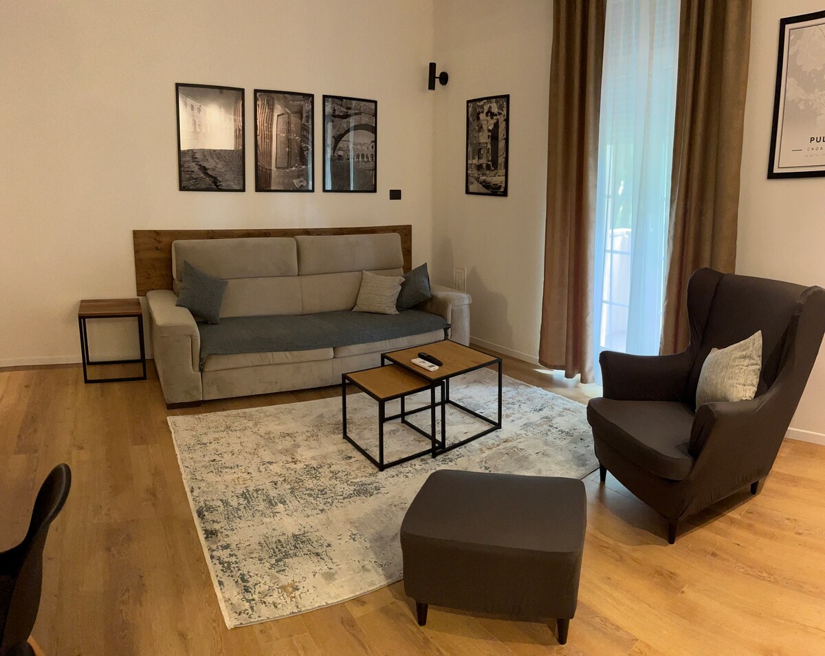 Uživajte u elegantnom uređenju apartmana u strogom centru grada. Stan je idealan za 2 osobe, te se sastoji od dnevnog boravka, kuhinje i blagovaone, spavaće sobe, kupaonice te male zatvorene terase. Smješten je na prvom katu jedne od najpoznatijih Pulskih ulica - Kandlerova ulica. Opremljen za idealan odmor i uživanje u vašem zasluženom odmoru.