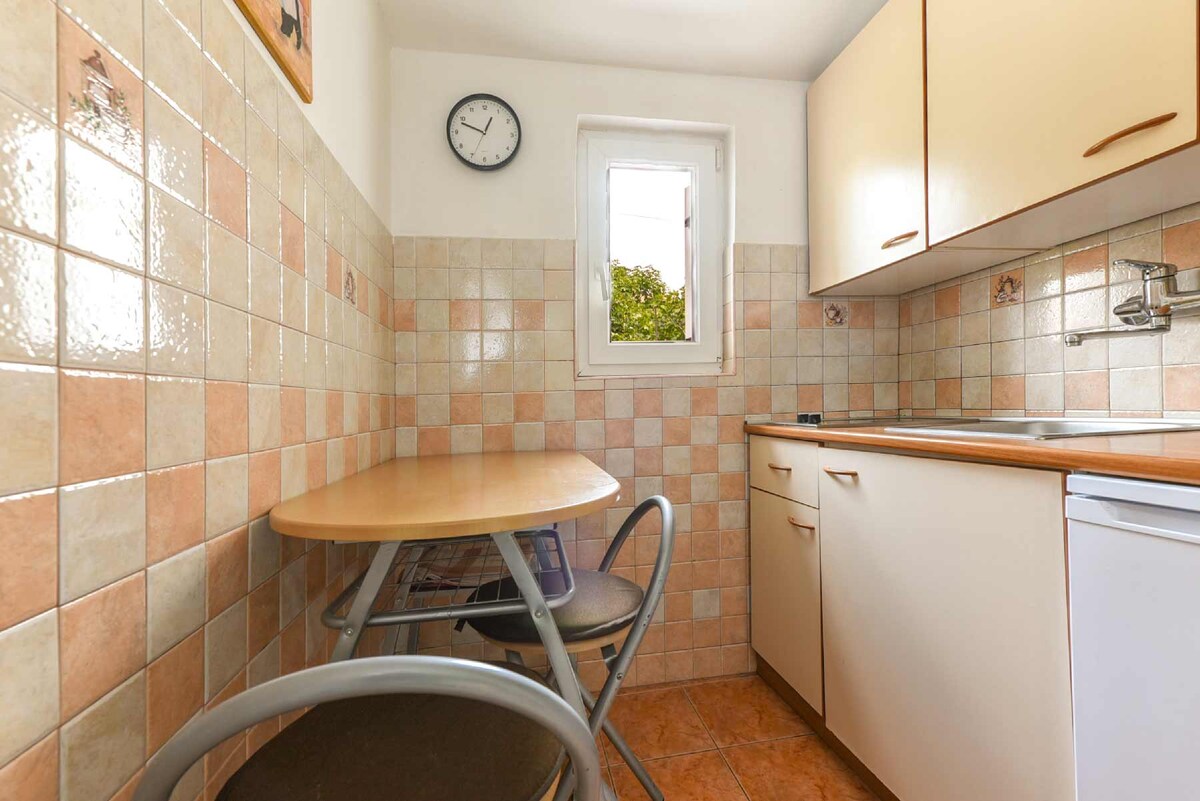 Khách sạn có diện tích 35m2 và có thể chứa số lượng người sau: 2+ 1. Trong căn hộ có một phòng ngủ, một phòng khách nơi một người có thể ngủ trên ghế sofa, nhà bếp, phòng tắm có vòi sen và sân thượng lớn với phần riêng của khu vườn được trang bị lò nướng và đồ nội thất sân vườn. Bếp được trang bị bàn ghế cho mỗi người; dụng cụ nhà bếp, nồi, dao kéo, quần áo bát đĩa, nồi cơm điện, tủ lạnh với ngăn đông, máy pha cà phê. Nhà tách biệt, điều hòa không khí, điều hòa không khí đã bao gồm trong giá, TV, ga trải giường được giao trong thay đổi hàng tuần, khăn tắm được cung cấp (2 khăn tắm nhỏ mỗi người mỗi tuần), internet (% {language), sử dụng miễn phí, giá bao gồm những thứ sau đây: thay ga trải giường (hàng tuần), vệ sinh cuối cùng khi kết thúc thời gian lưu trú, sử dụng điện, nước, thuế và bãi đậu xe. Sân thượng, bàn và chỗ ngồi riêng được cung cấp cho sân thượng, diện tích sân thượng 20 m2. Máy giặt tại chủ nhà.