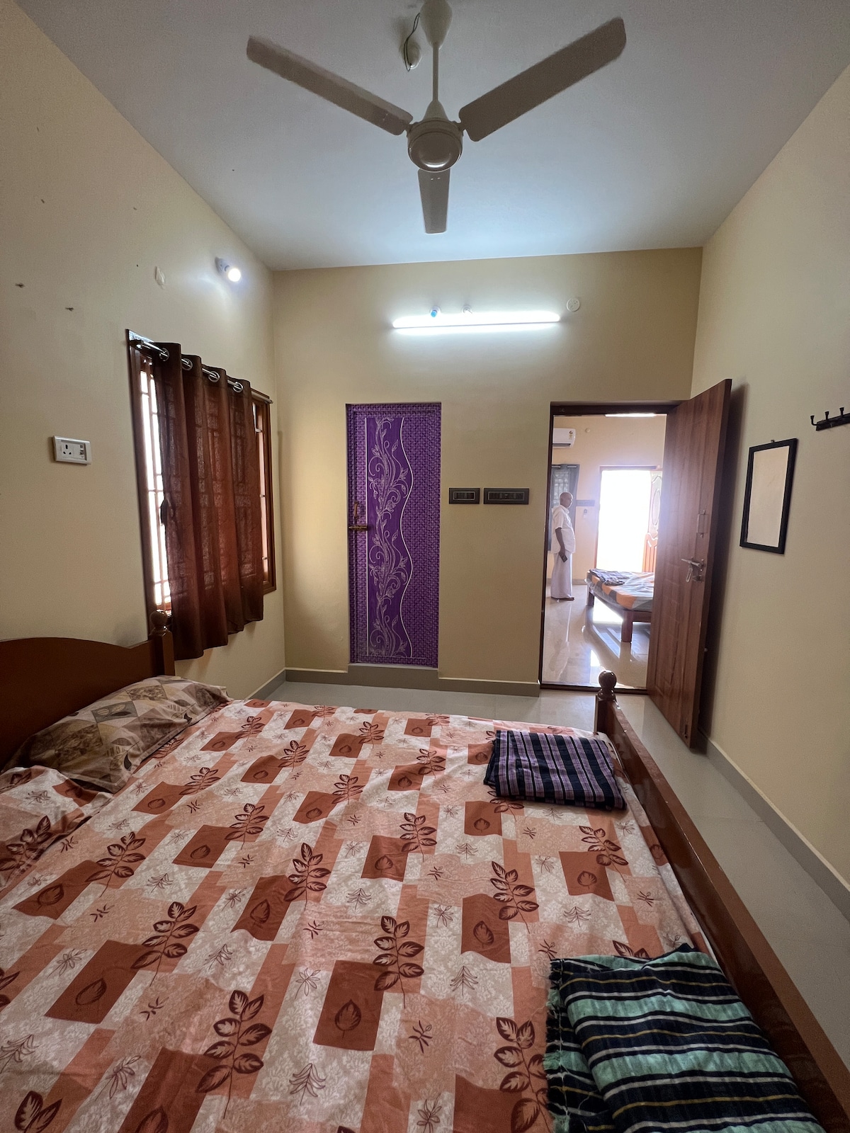 Vanakkam!! This property is perfect if your plan is to visit Srirangam temple, Samayapuram temple and Thiruvanaikovil (Jambukeswarar Temple) as the property sets right in the middle of all these temples. I am Jayaraman, a retired central government employee. I am running this simple home stay along with my wife, Geetha, and we are thrilled to be your host. The picture (Unit C- Has AC)