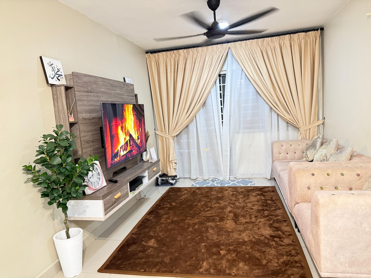 Serasi Stay in Puncak Alam offers a comfortable retreat with cozy air-conditioned bedrooms and living room, a fully equipped kitchen, and free WiFi. Enjoy access to a refreshing swimming pool. Conveniently located near various attractions especially UiTM, it's perfect for families or groups seeking relaxation in a homely setting.